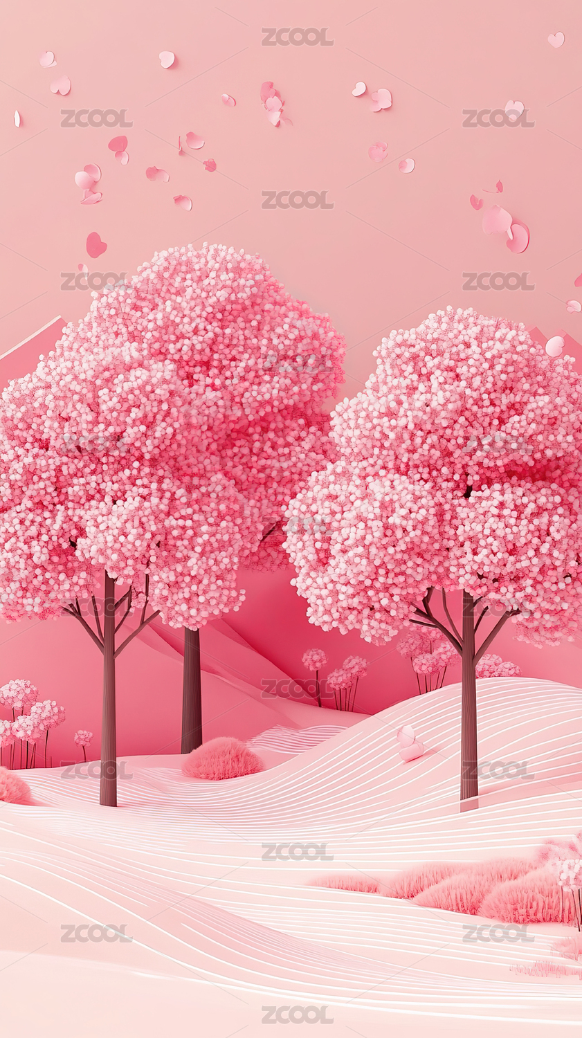 3D,背景,风景,卡通,可爱,产品展台,道路,粉色,森林,树