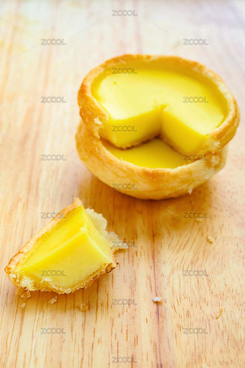木板背景上的美味蛋挞