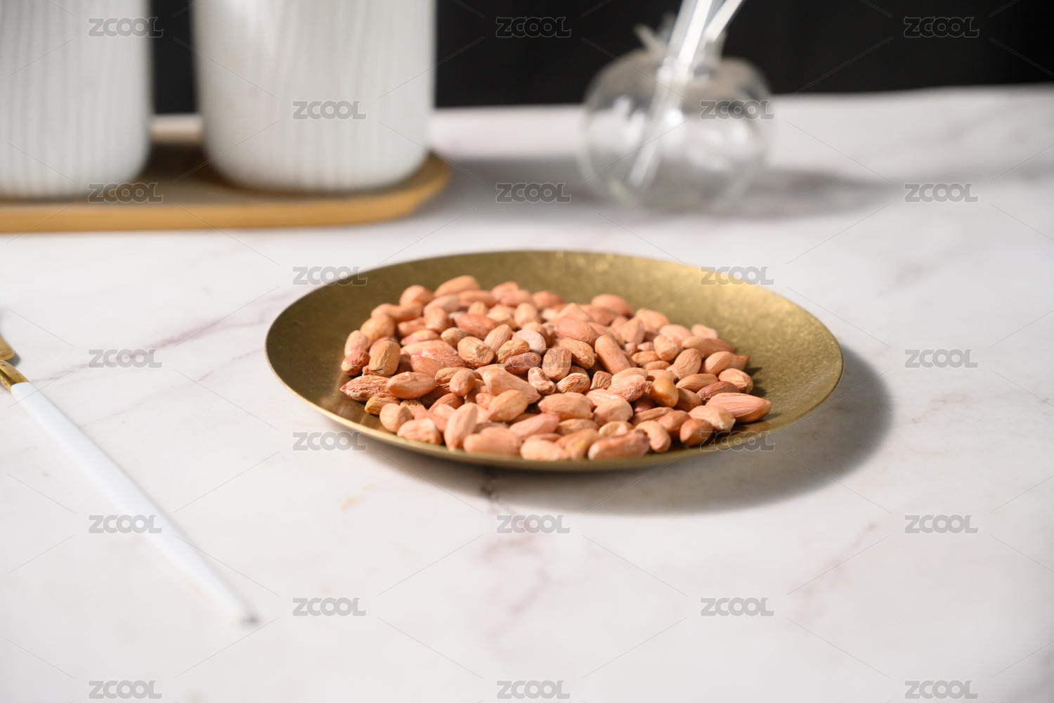 桌面上的盘子里的美味可口的新鲜花生仁