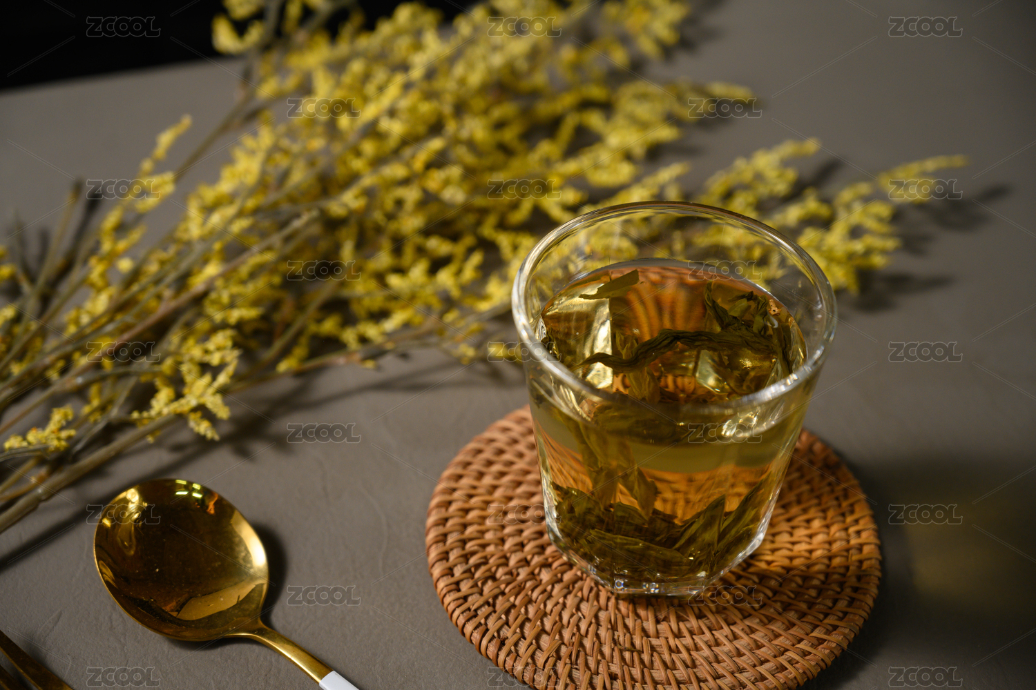桌面上的杯子里的甘甜可口的青蒿茶
