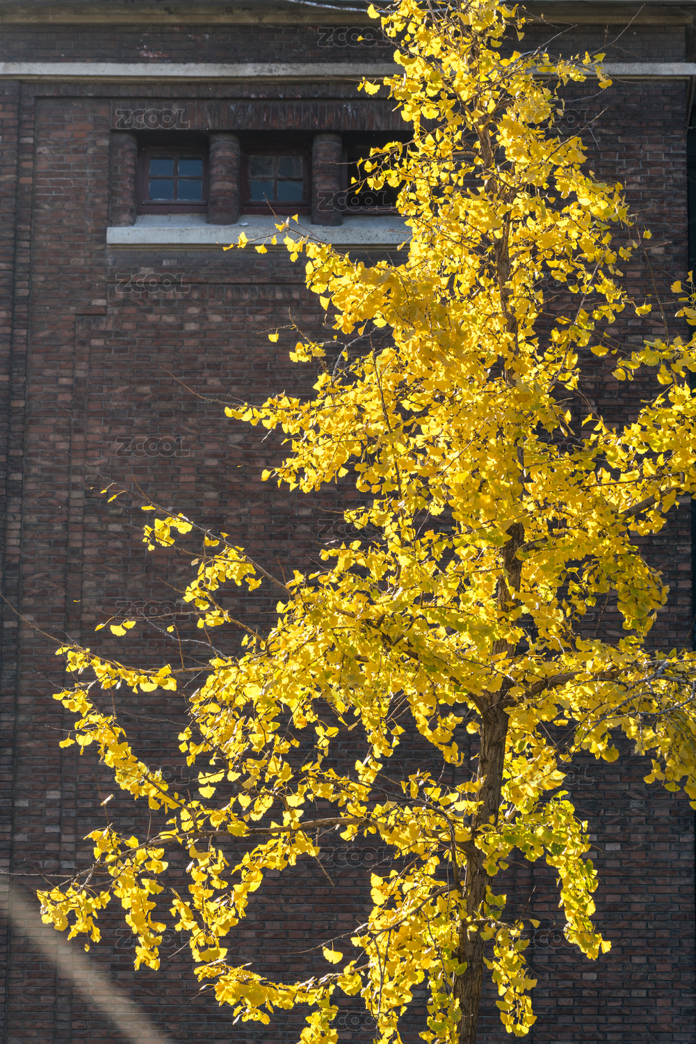 冬日校园里黄透的银杏树银杏叶