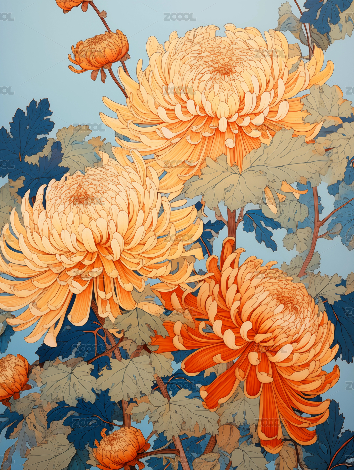 国风,中国风,国潮,菊花,重阳节,菊,秋菊,设计,图案,花朵