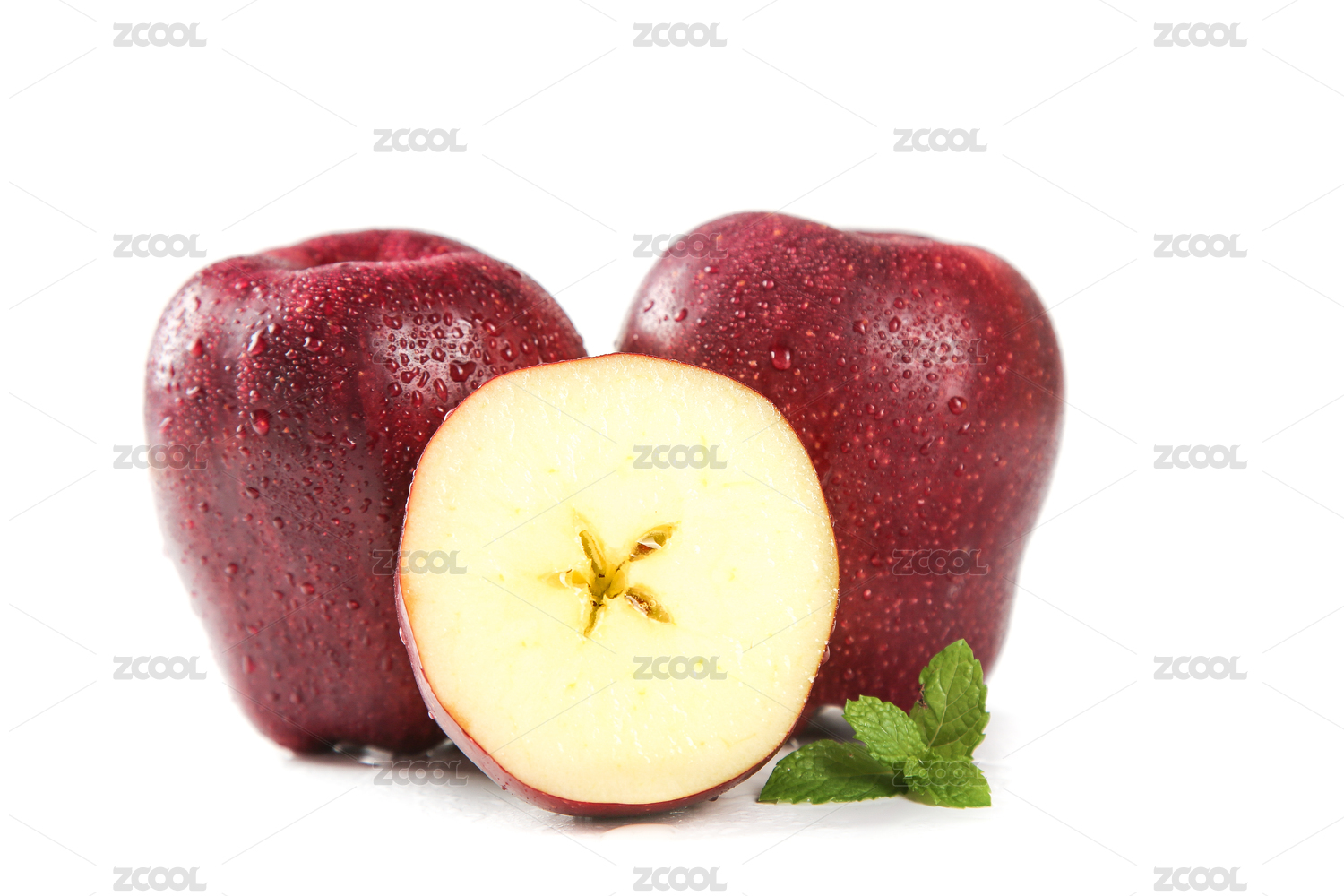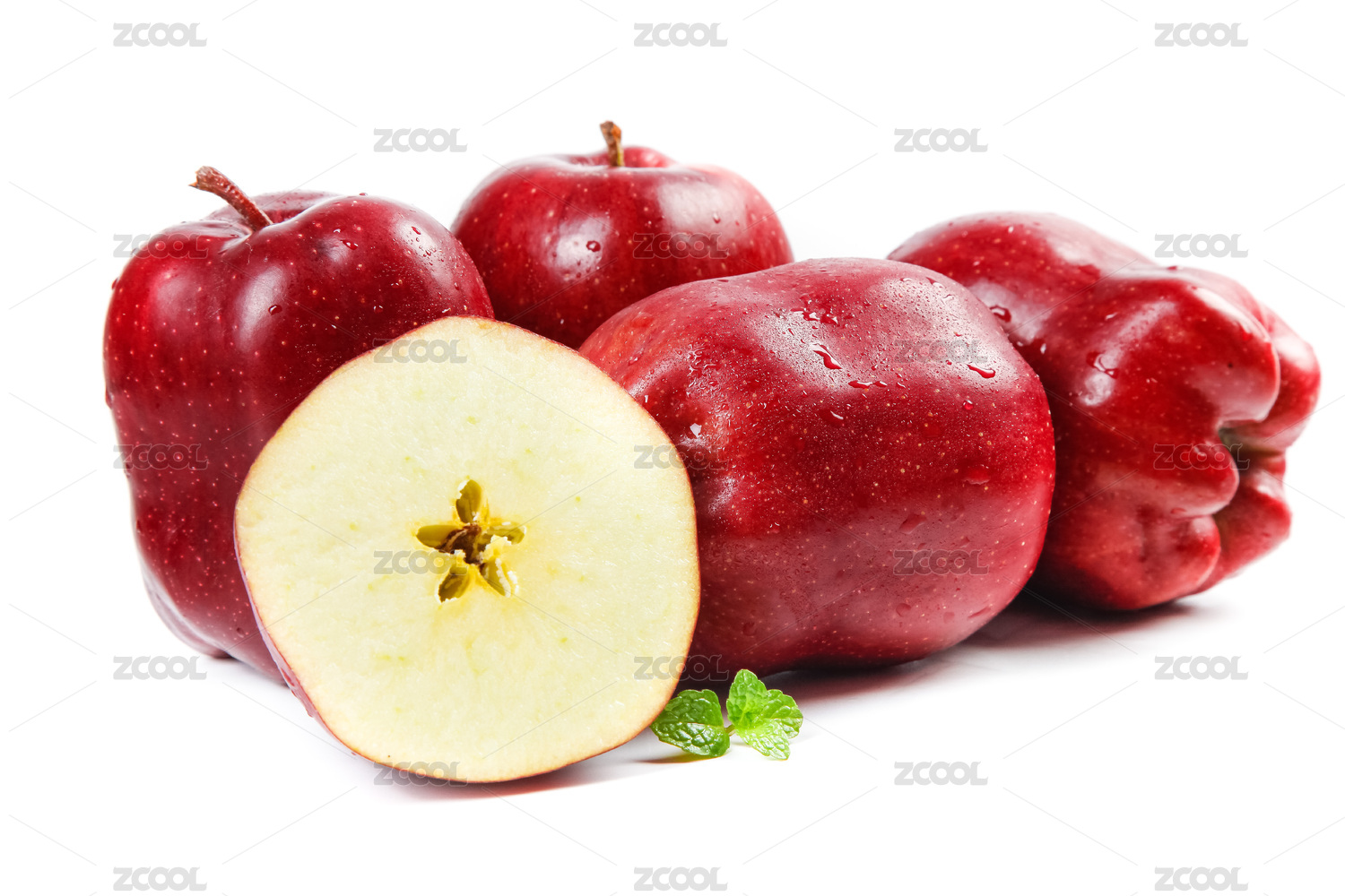 白底上切开的蛇果苹果