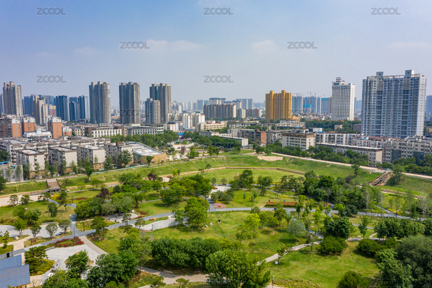 中国湖北武汉江汉区王家墩公园航拍平面