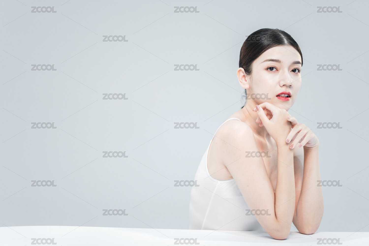 保养,纯色背景,淡妆,光滑,护肤,化妆,活力,积极,简单,露肩