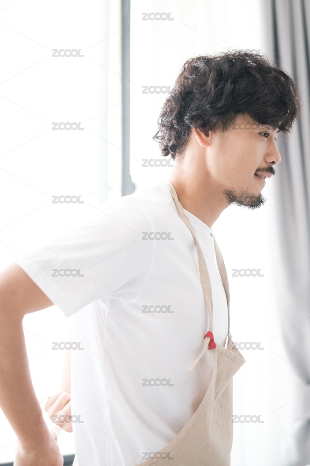 白色,成熟,厨房,干净,胡子,简洁,居家,卷发,男人,男性