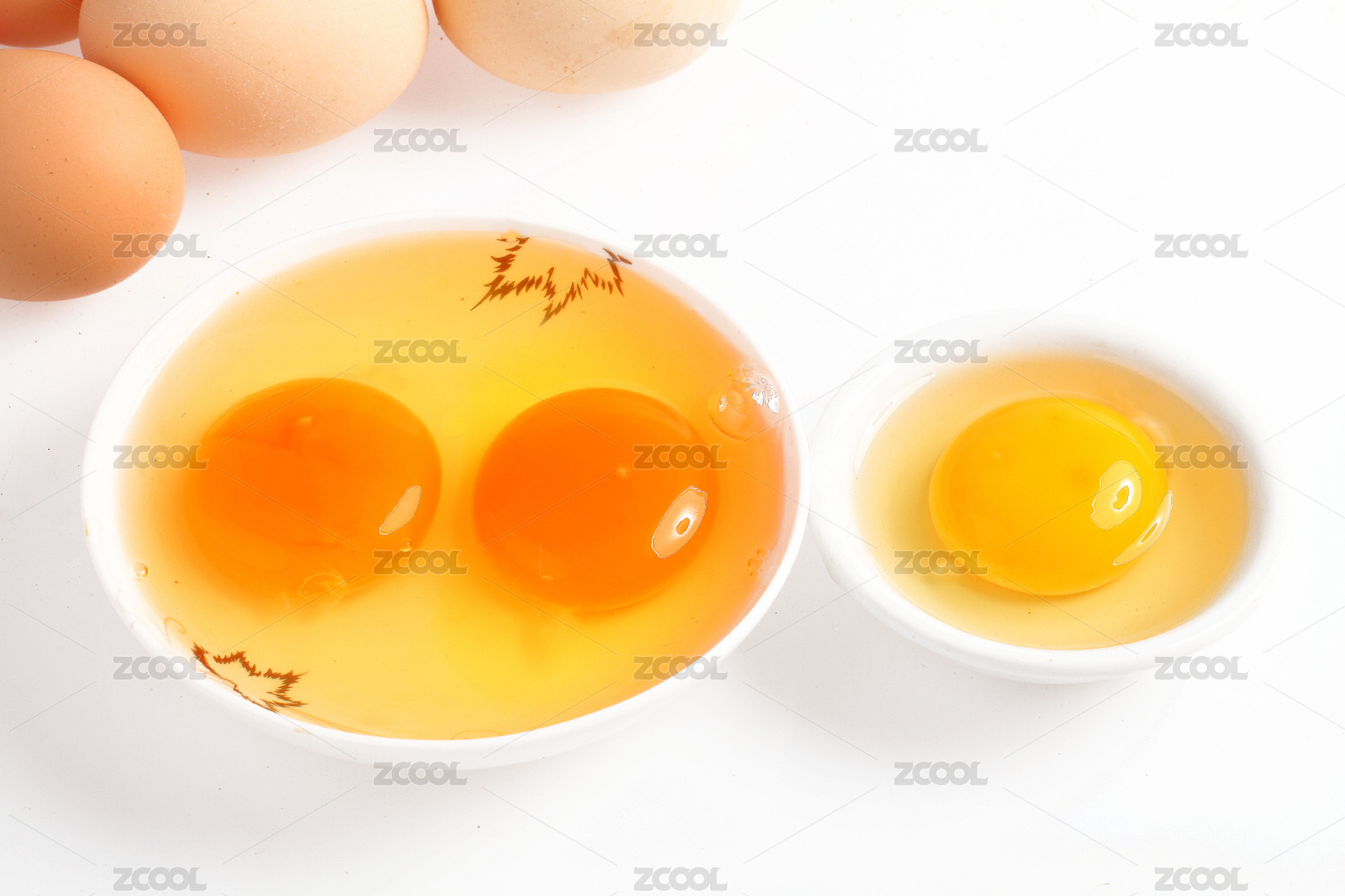 白底上的蛋黄和碟子里的鸡蛋黄与蛋清