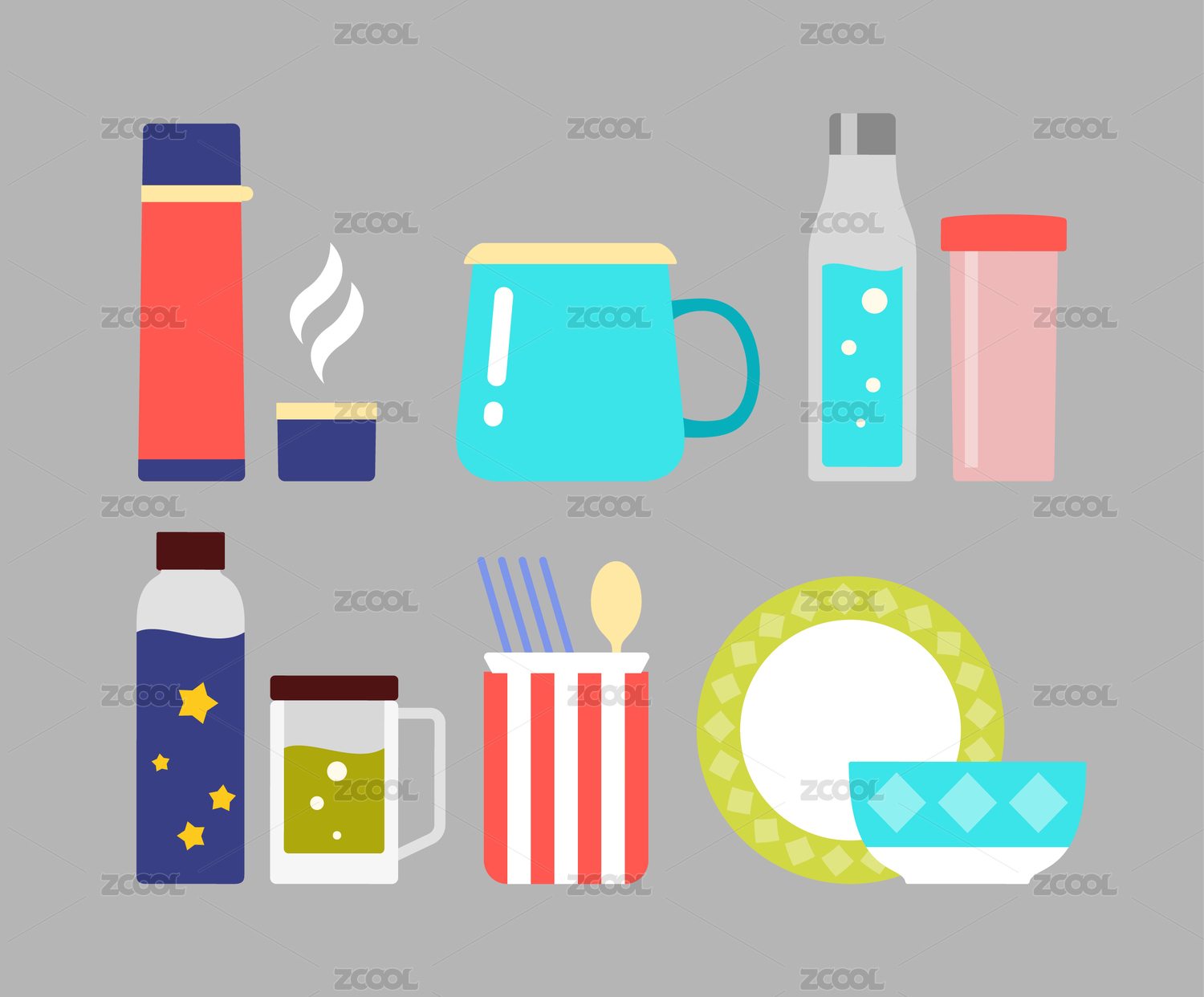 女性,生活品,矢量图,图标,化妆品,咖啡,粘毛器,口红,笔记本,吹风机