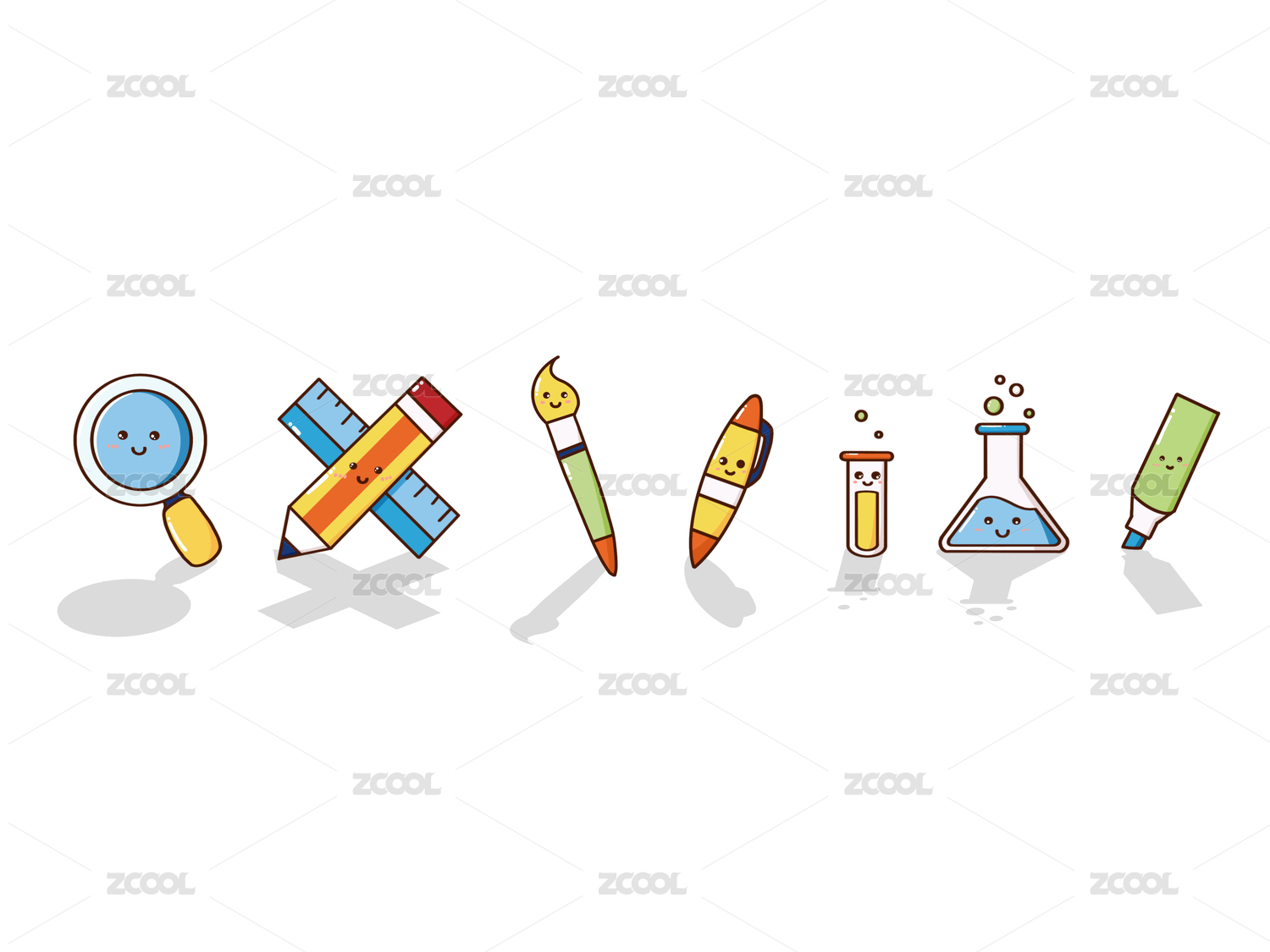 蓝绿色卡通直尺铅笔试管文具拟人互动