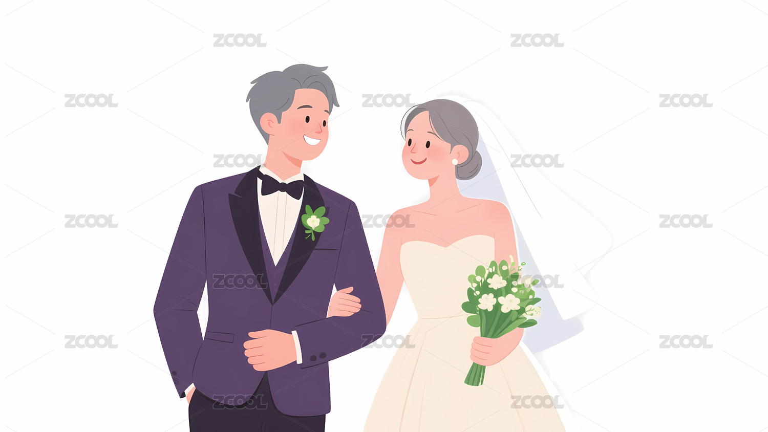 可爱七夕情人节结婚婚礼新郎新娘卡通插画