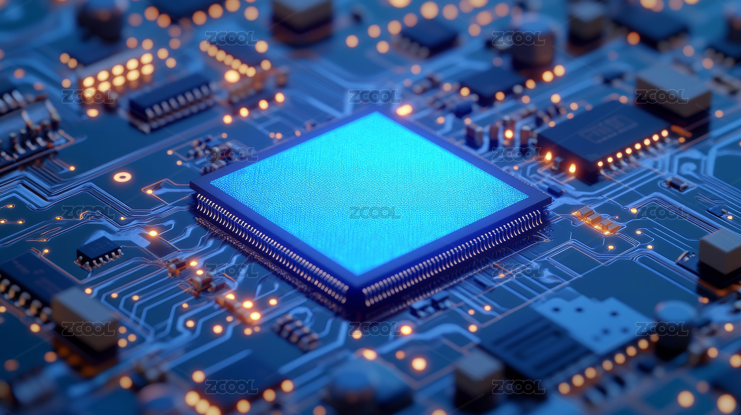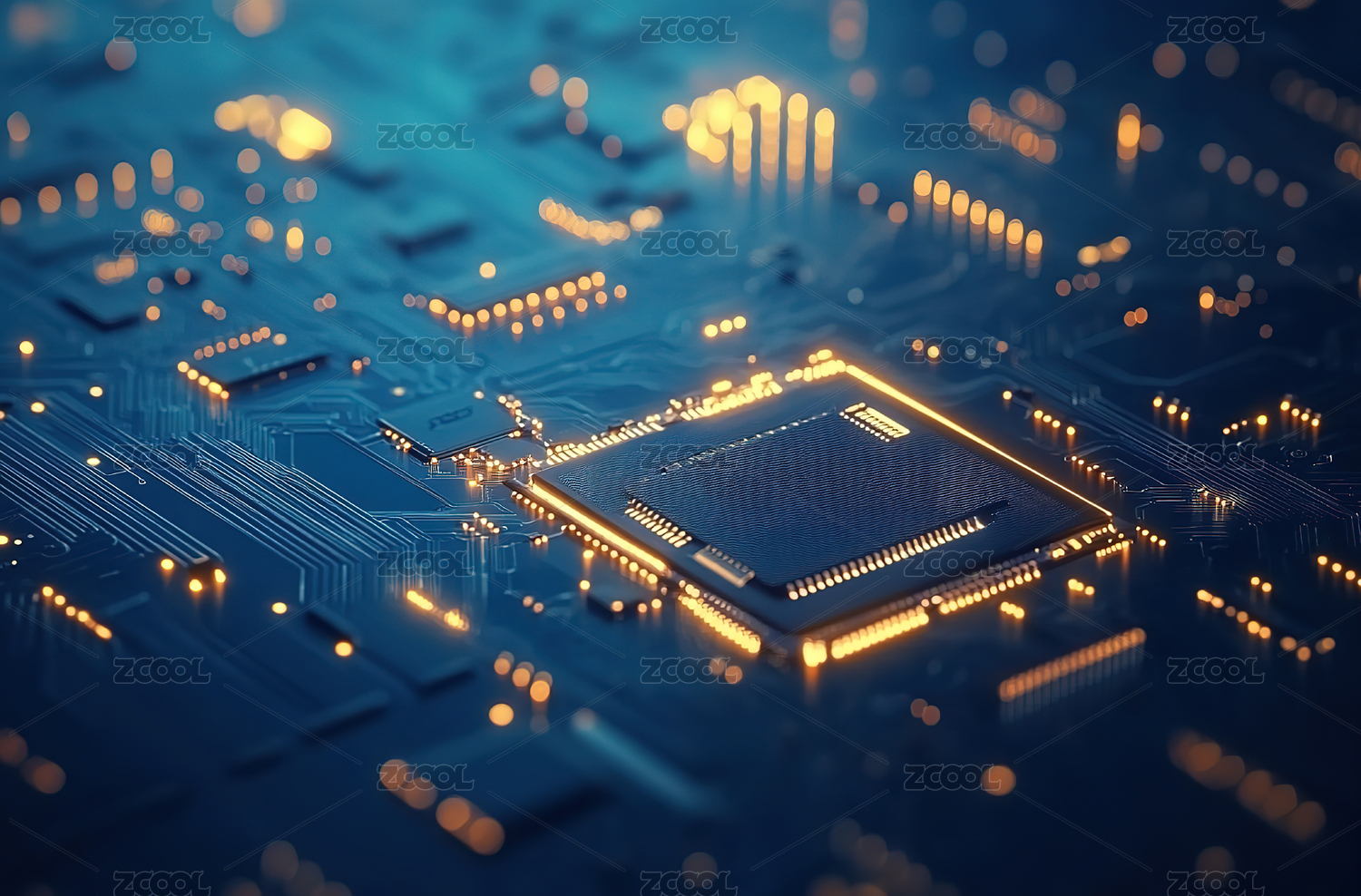 蓝色科技芯片微观电路板精密仪器