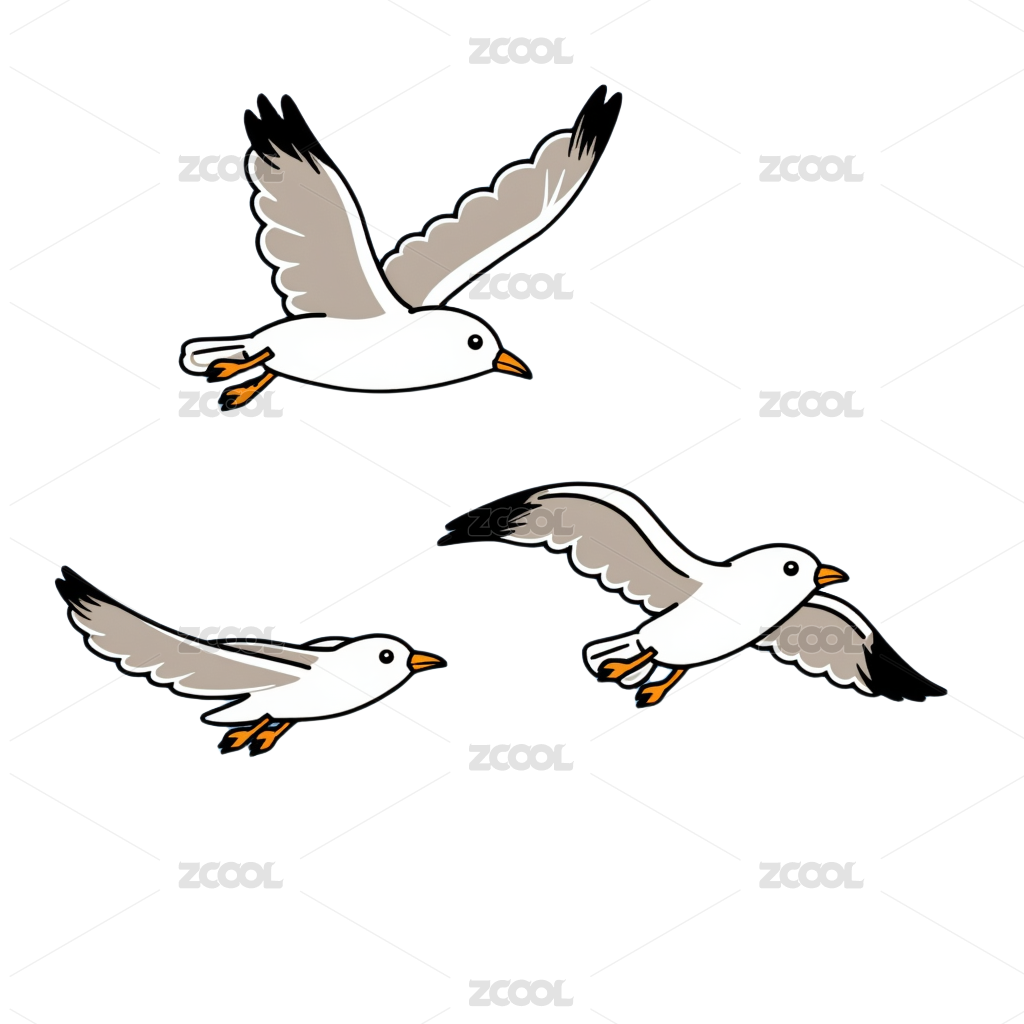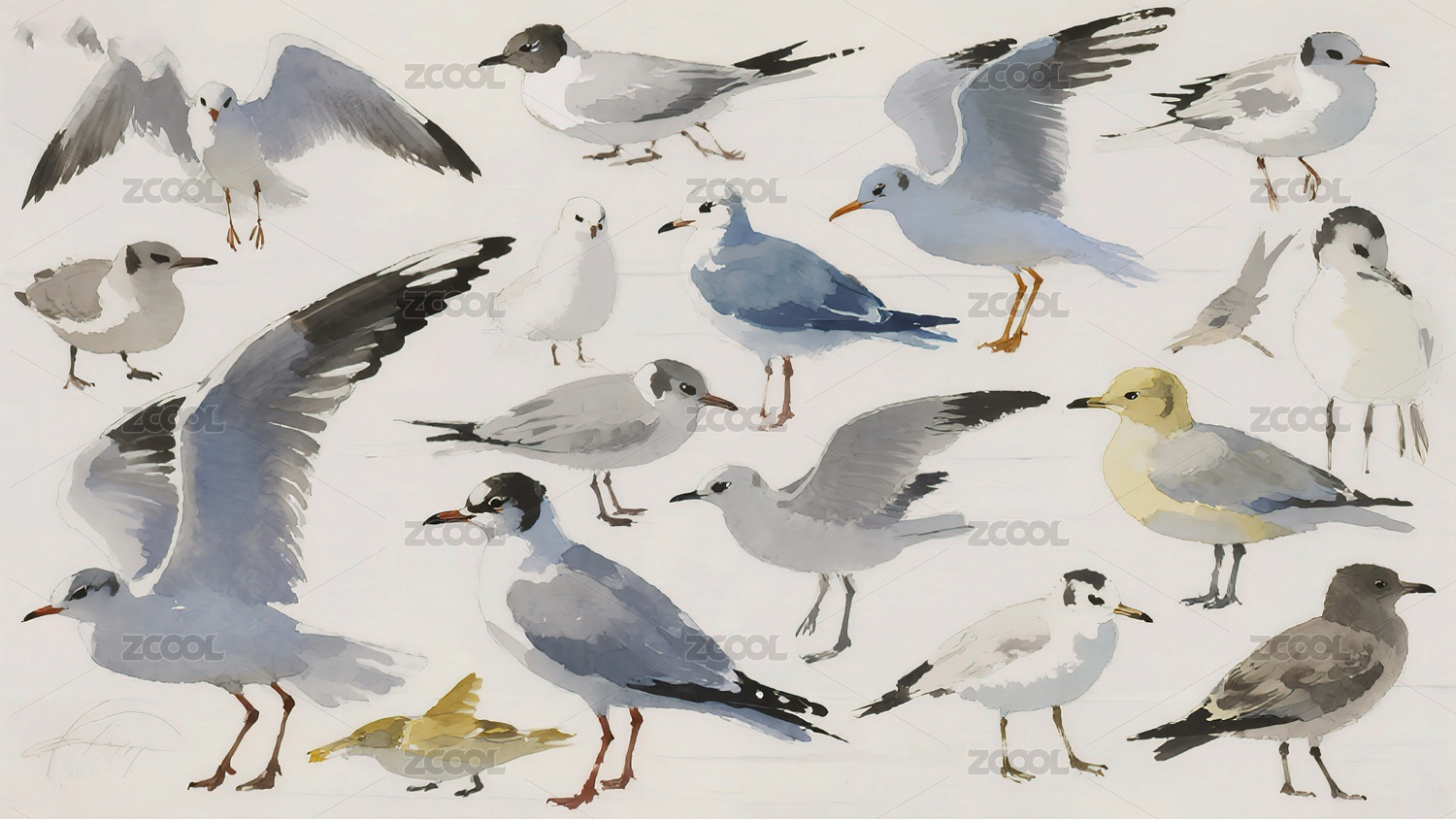 多种海鸥姿态绘画展示