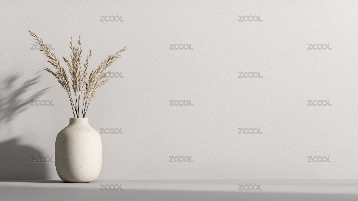 白花瓶插干草旁石头浅灰简约自然