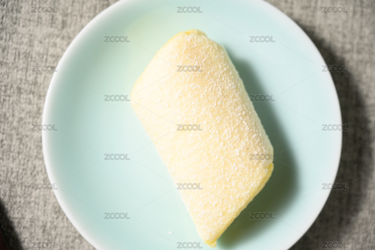 桌面上的盘子里的美味可口的蛋糕卷