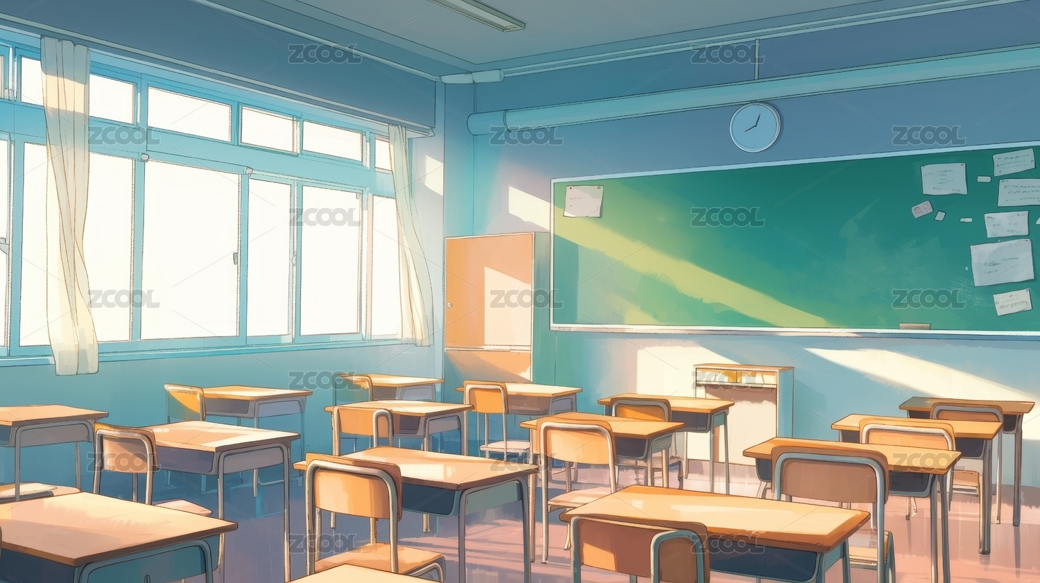 教室,室内,阳光,黑板,校园,学校,教育,插画,明亮,高考
