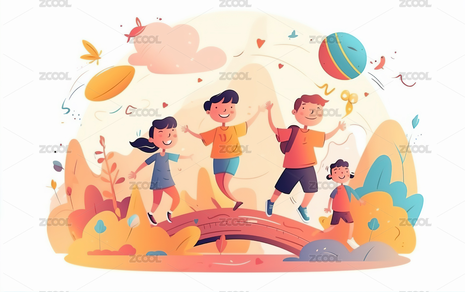 夏天,插画,自然,花,季节,矢量,绘画插图,户外,学校,彩虹
