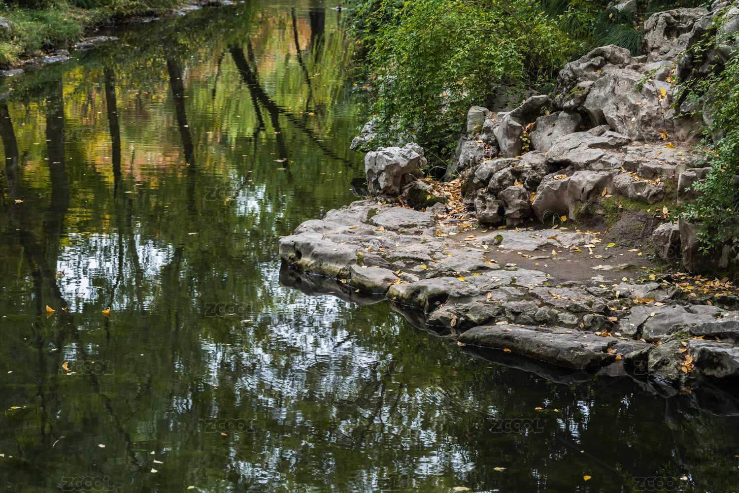 石头青草倒影