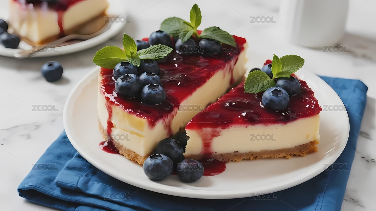 温馨蛋糕店内的蓝莓果酱蛋糕