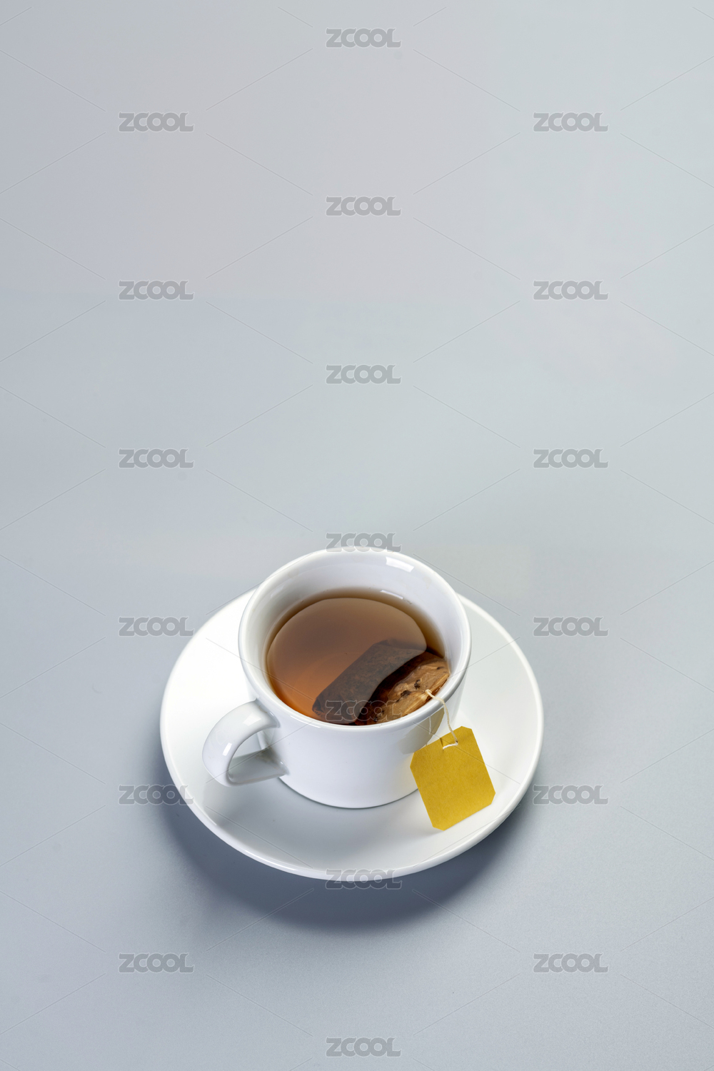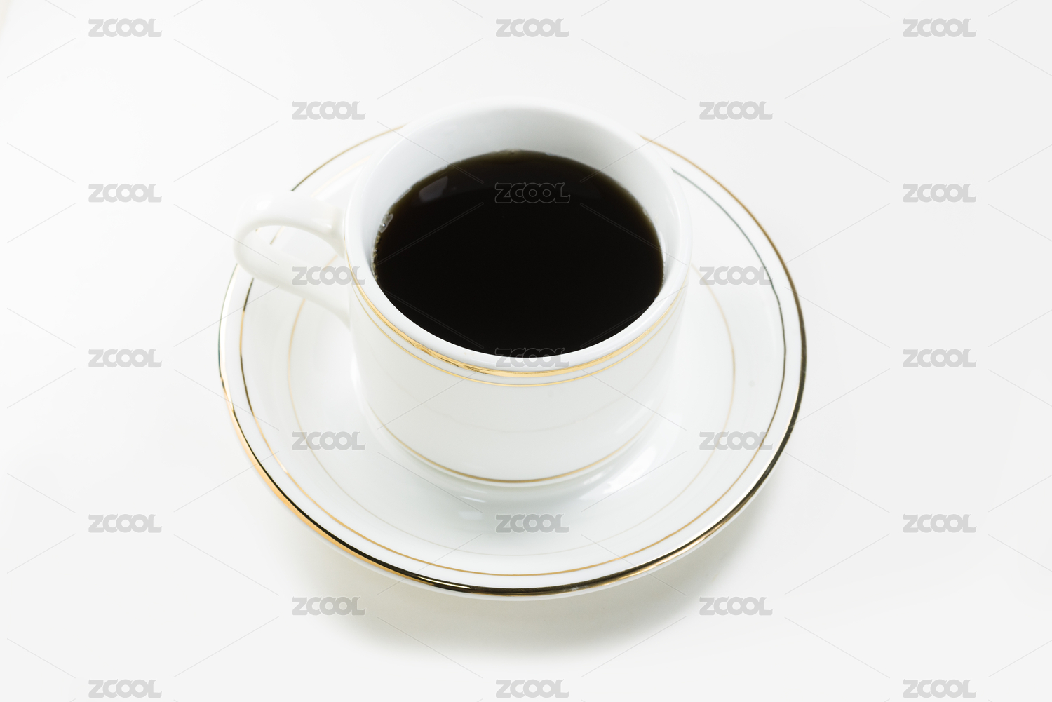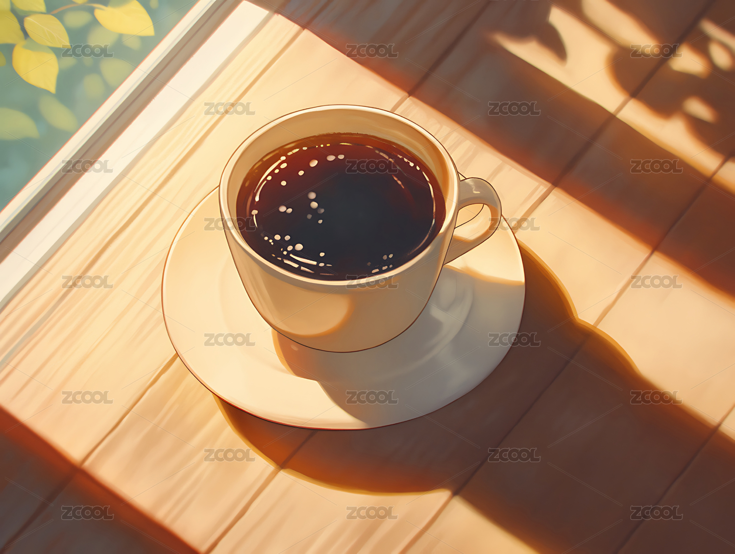 一杯咖啡和咖啡豆摆放在桌面上特写