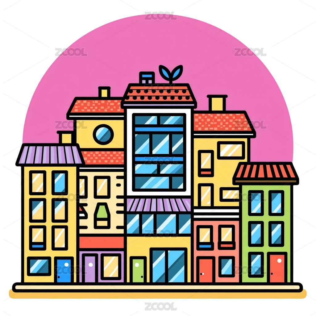 矢量,扁平化,简洁,店铺,建筑,健身房,便利店,KTV,饭店,街道