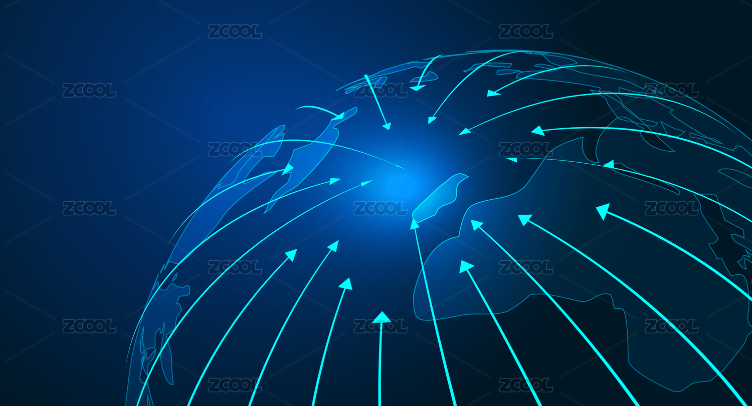 带箭头线条绕着数码地球汇聚全球化科技概念