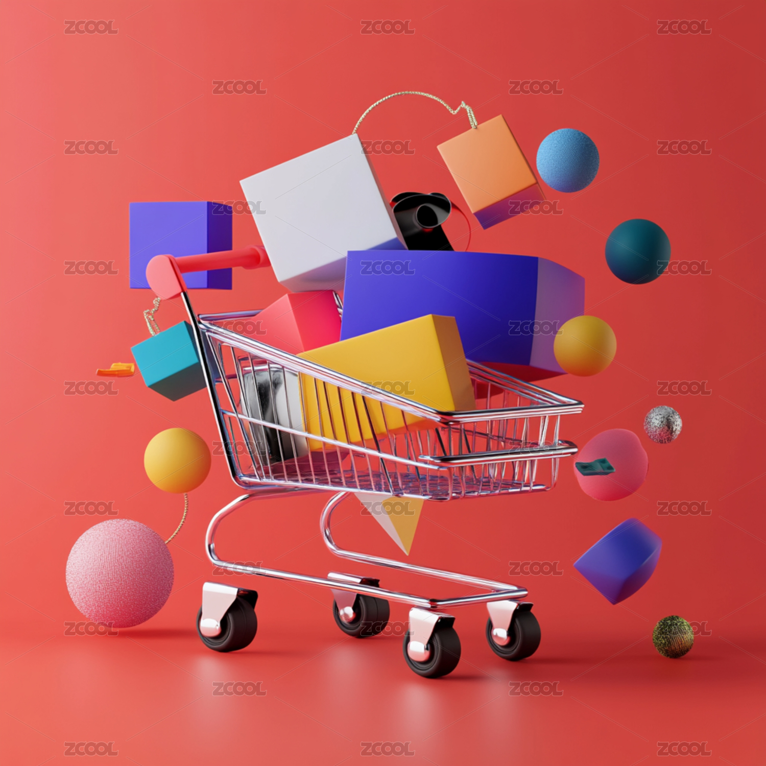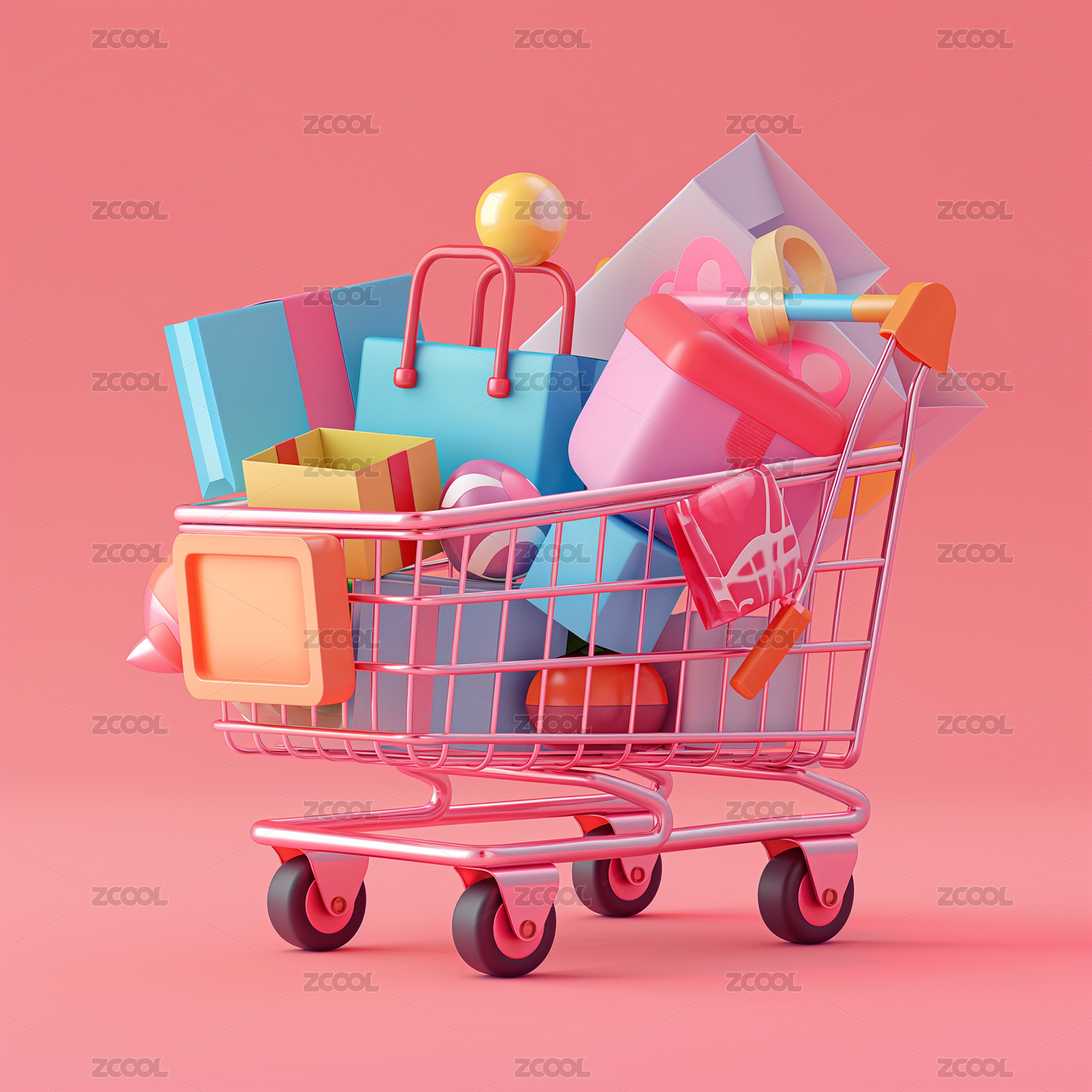 购物车,电子商务,插画,3D,电商,促销,购物,商品,广告,礼品