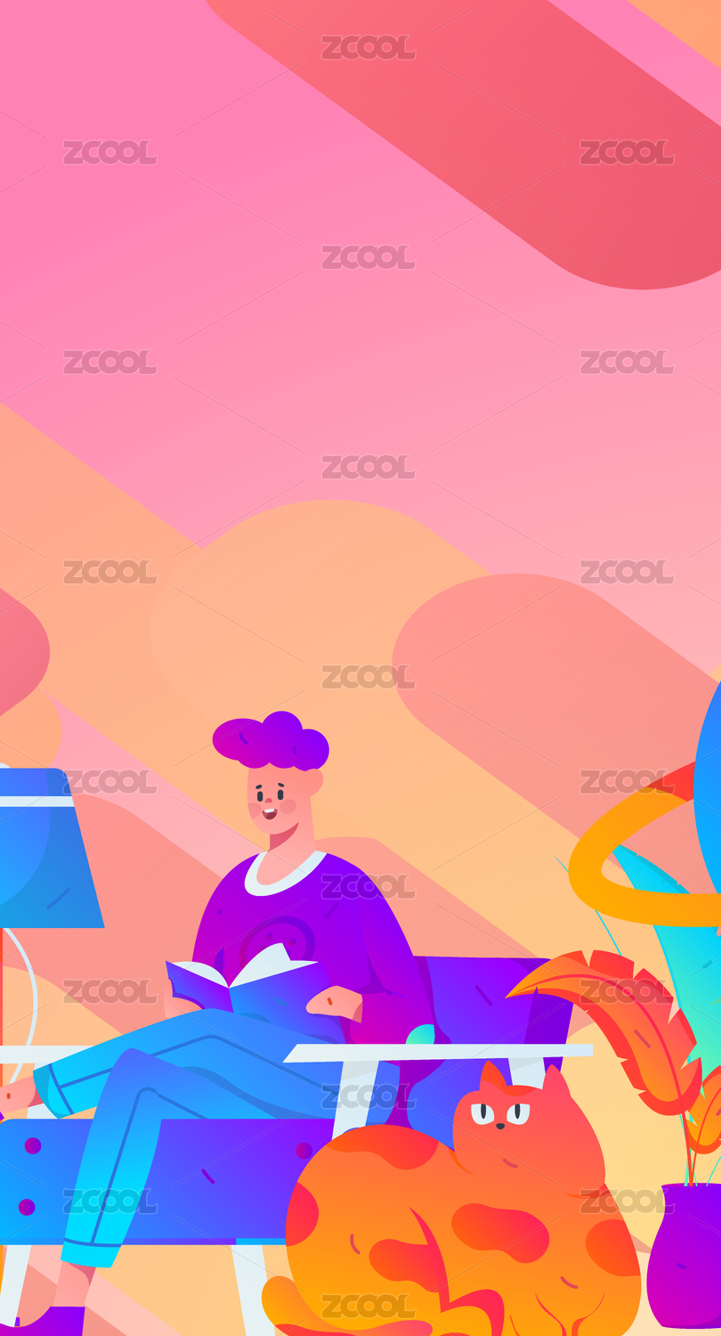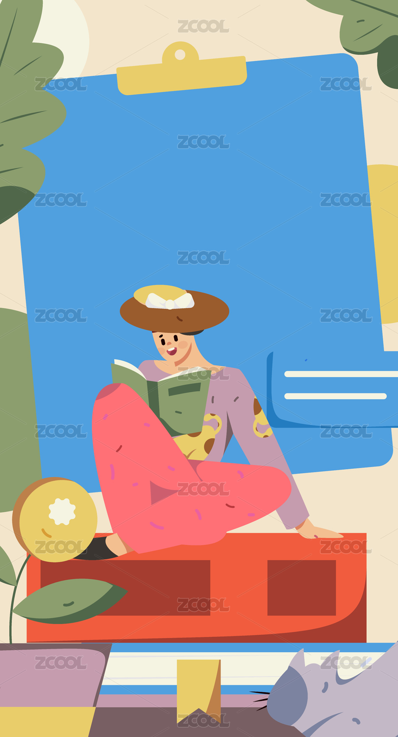 安静阅读的人物扁平矢量概念运营手绘插画