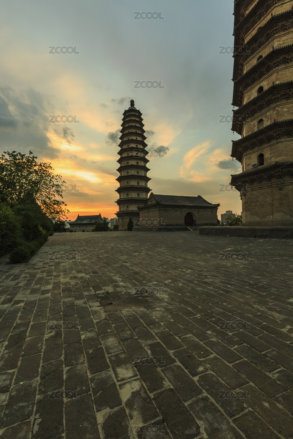 中国山西太原市郝庄双塔寺(永祚寺)风光