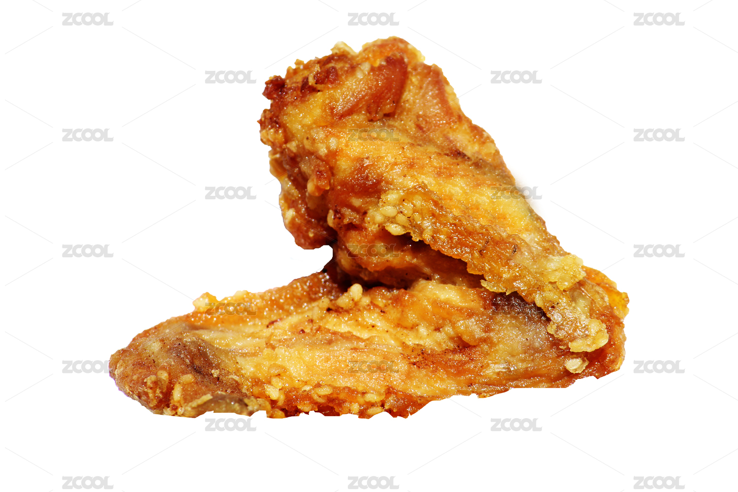 一块美食炸鸡特写的白底图
