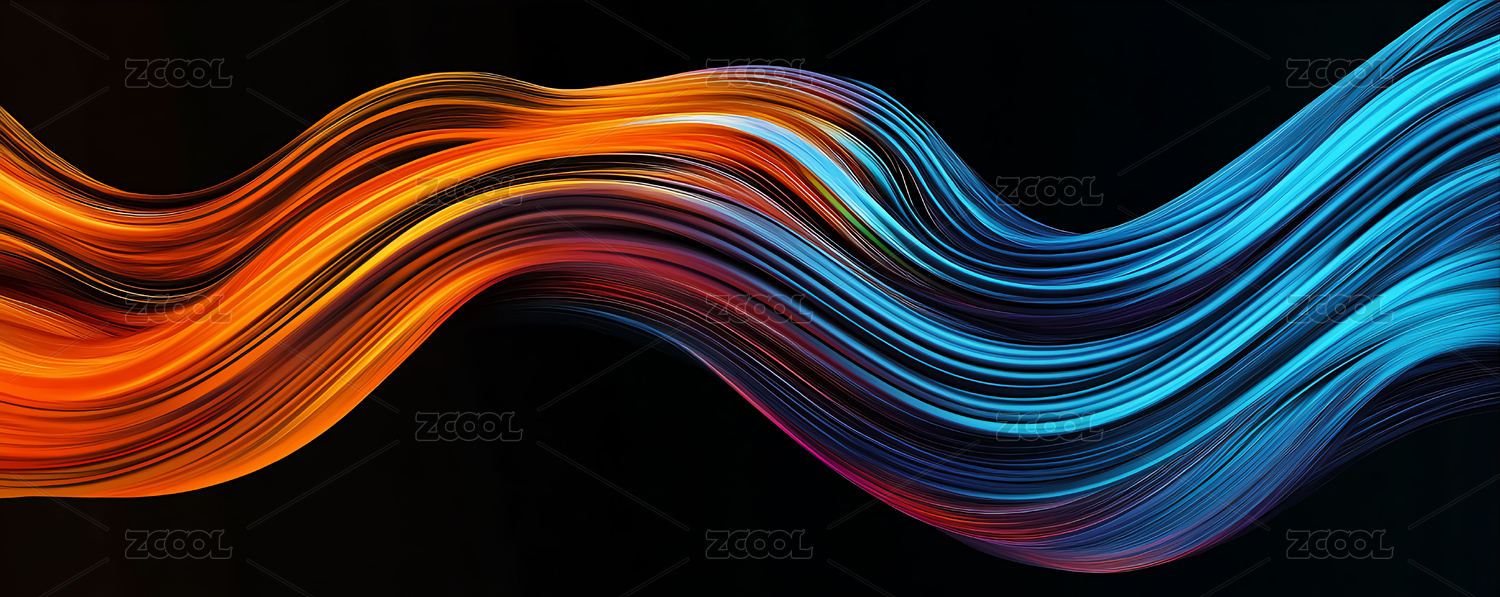彩色波浪线条深蓝背景
