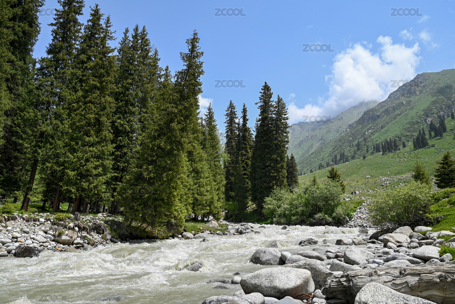 中国新疆伊犁库尔德宁自然保护区河谷风光