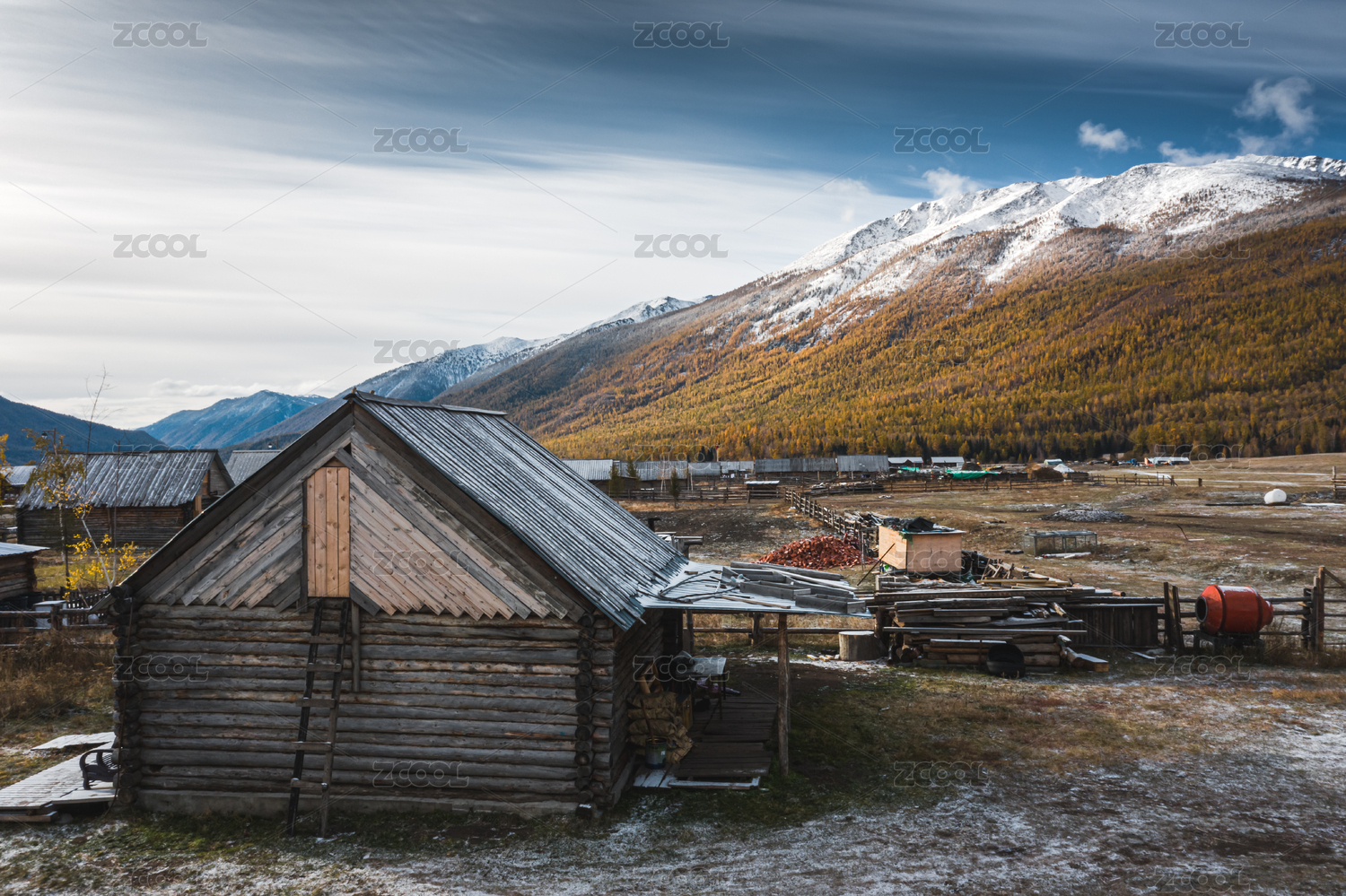 新疆,禾木,景点,雪山,小木屋,房屋,建筑,自然,旅行,风景