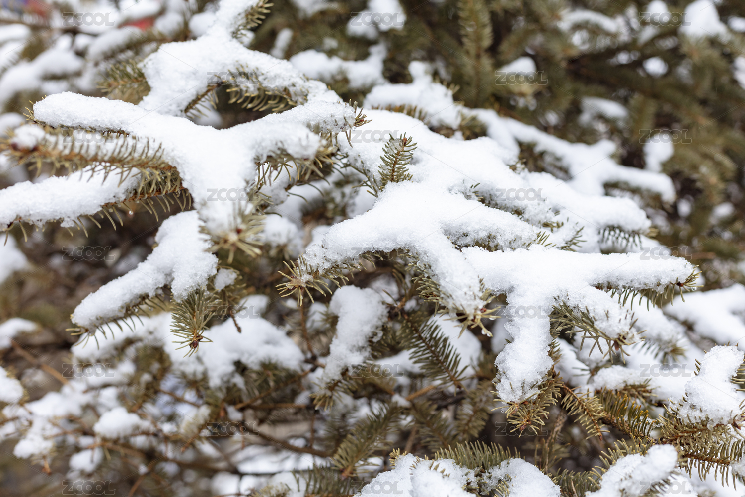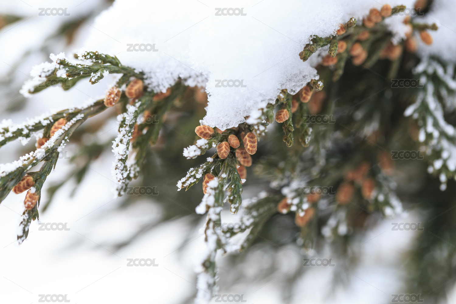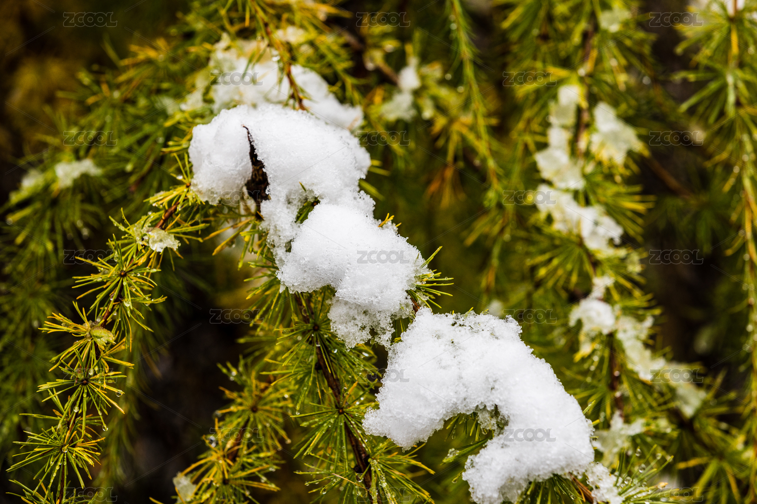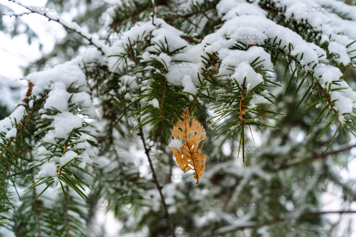 落雪覆盖的针叶松枝