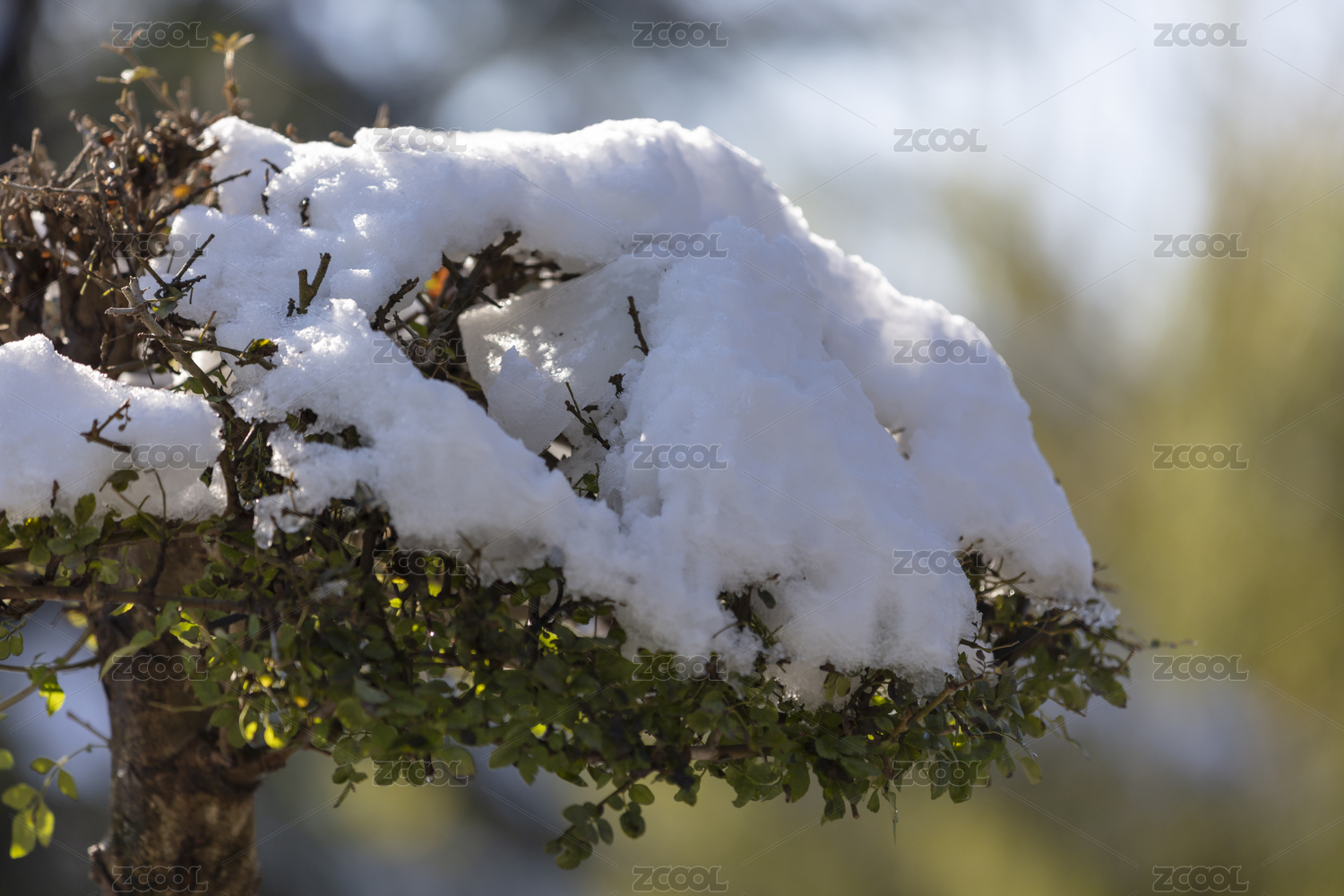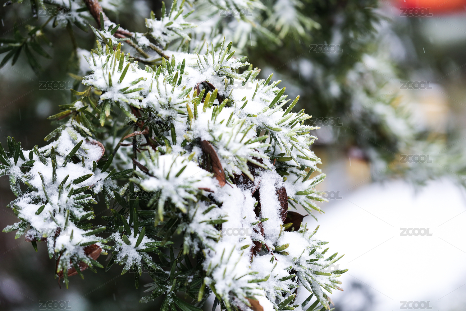 雪后落雪的植物