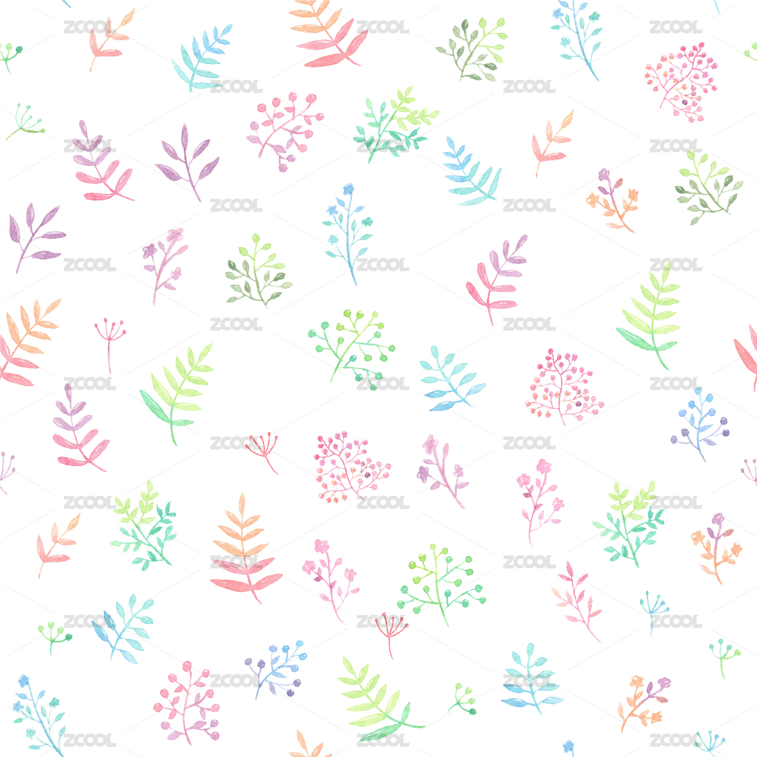 夏天彩色蕨类植物叶子四方连续循环无缝拼贴