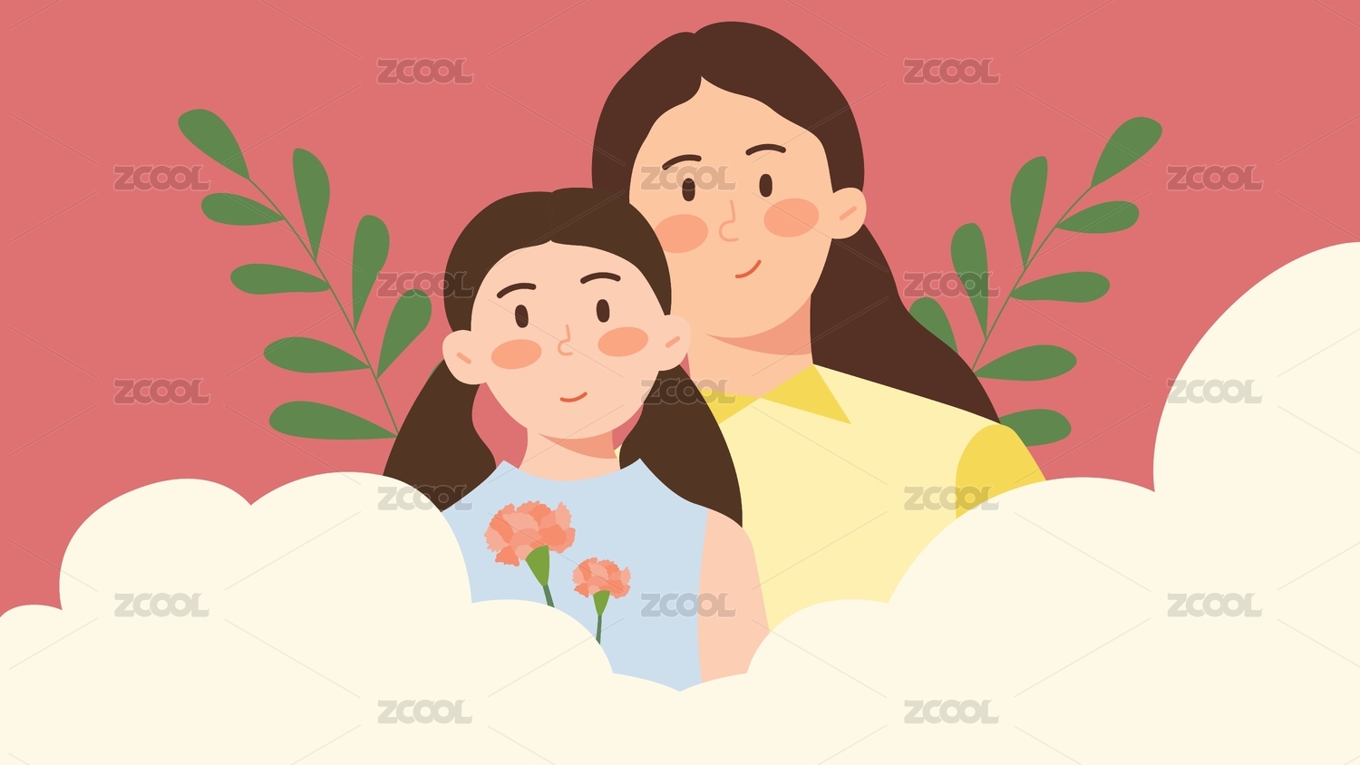 母亲节女儿送花给妈妈插画