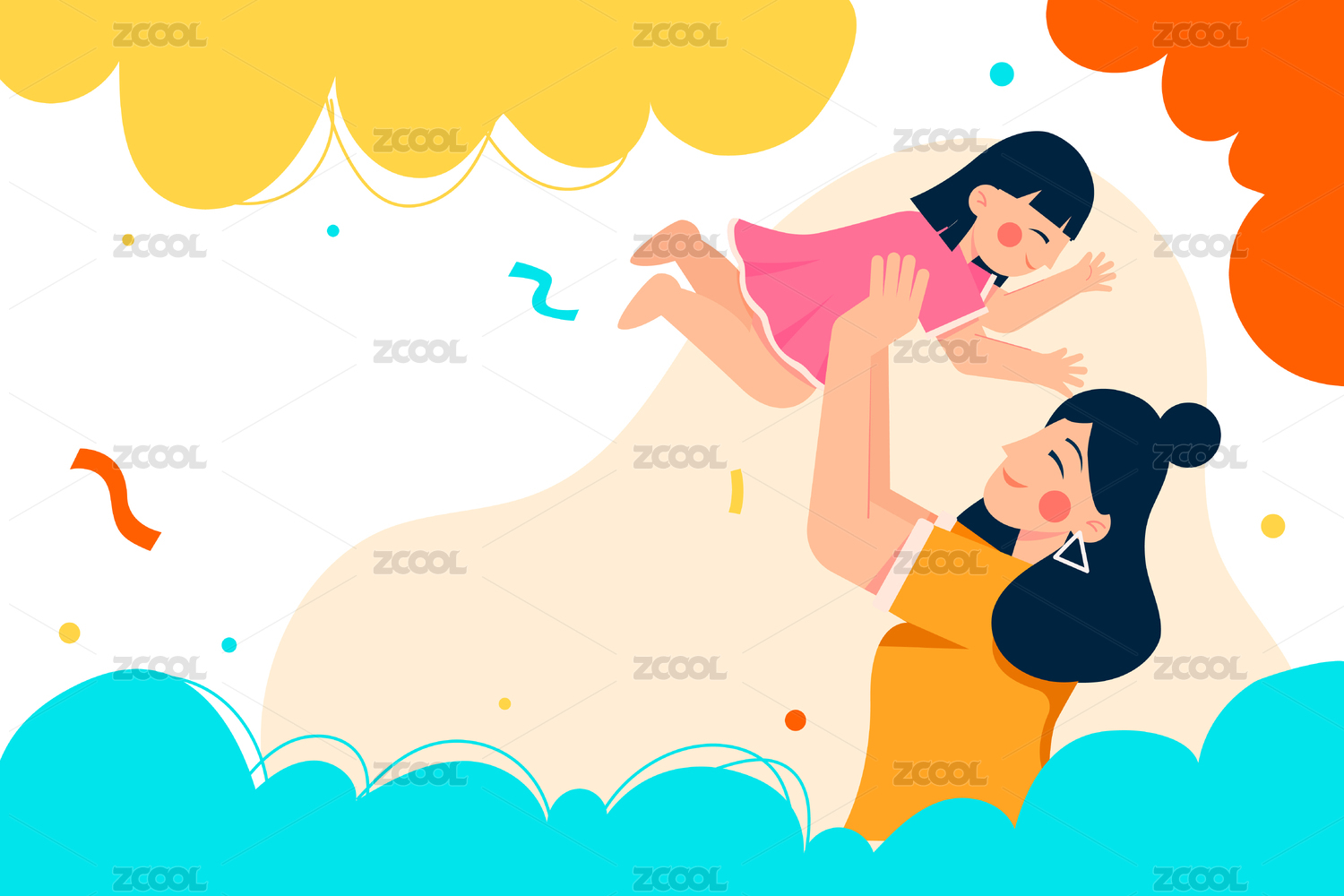 母女亲子瞬间矢量插画