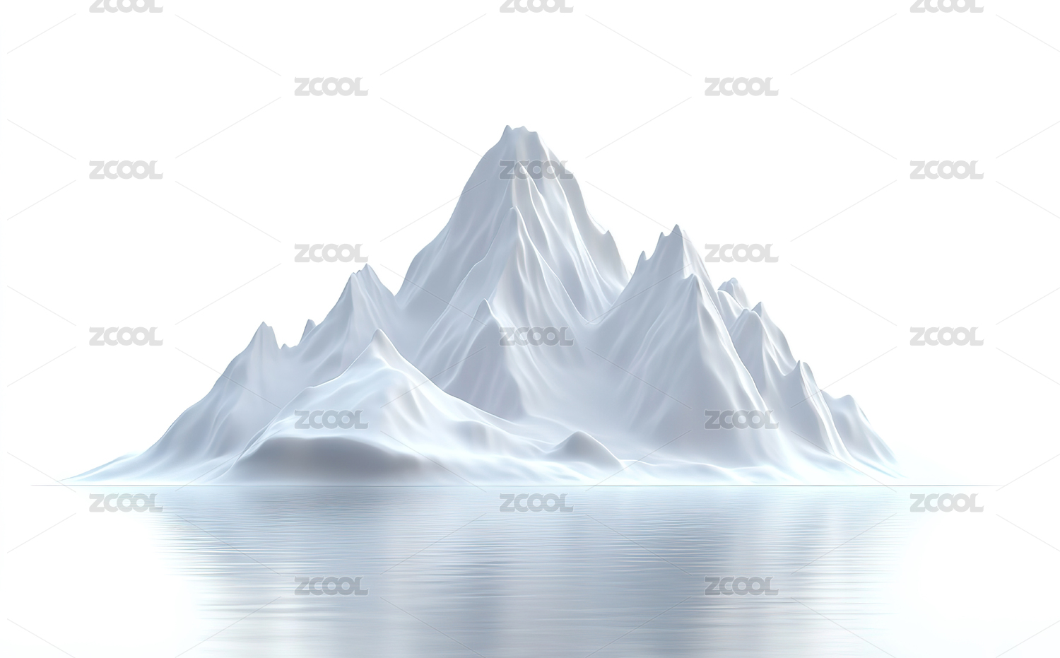 白色背景下的冰山特写镜头