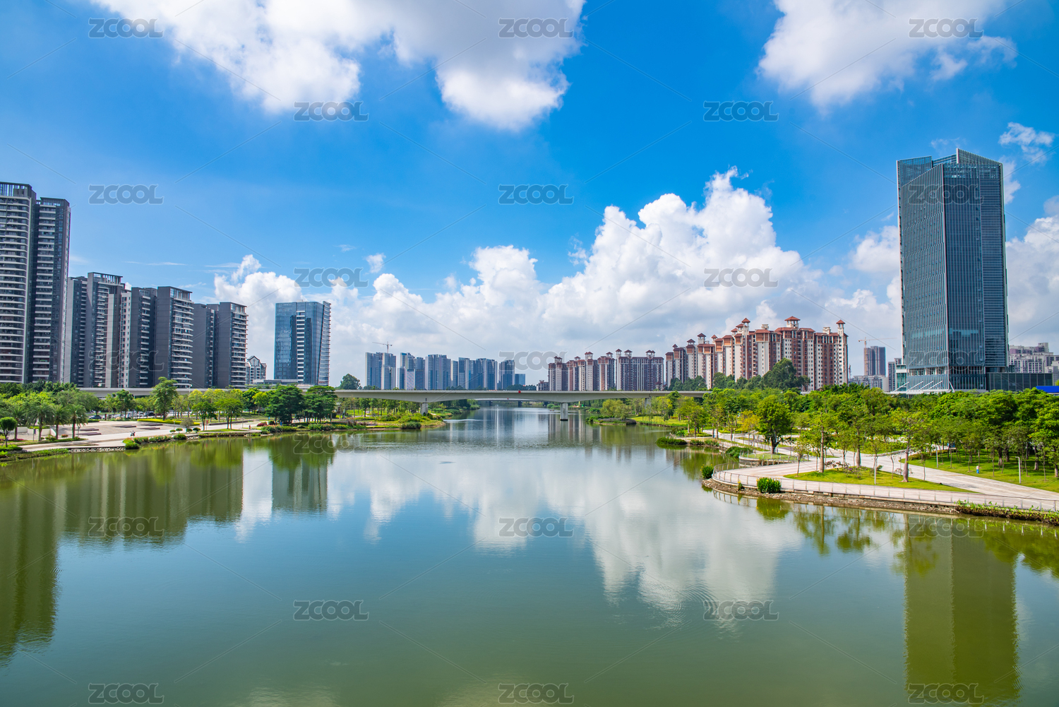 广州南沙环境优美的湖景楼盘住宅区