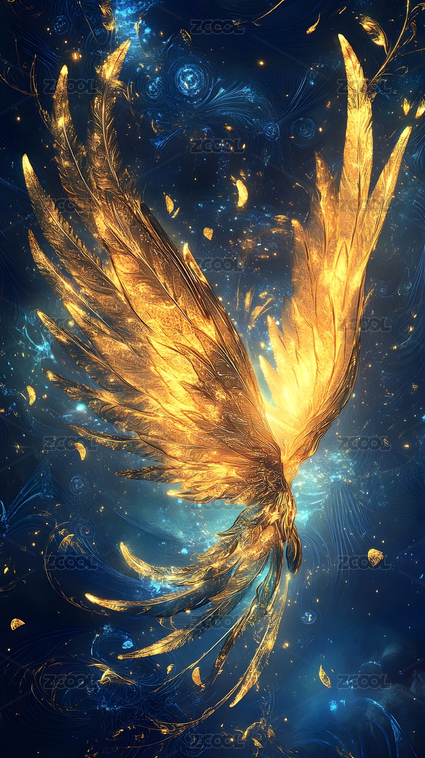 金色蓝色梦幻羽翼
