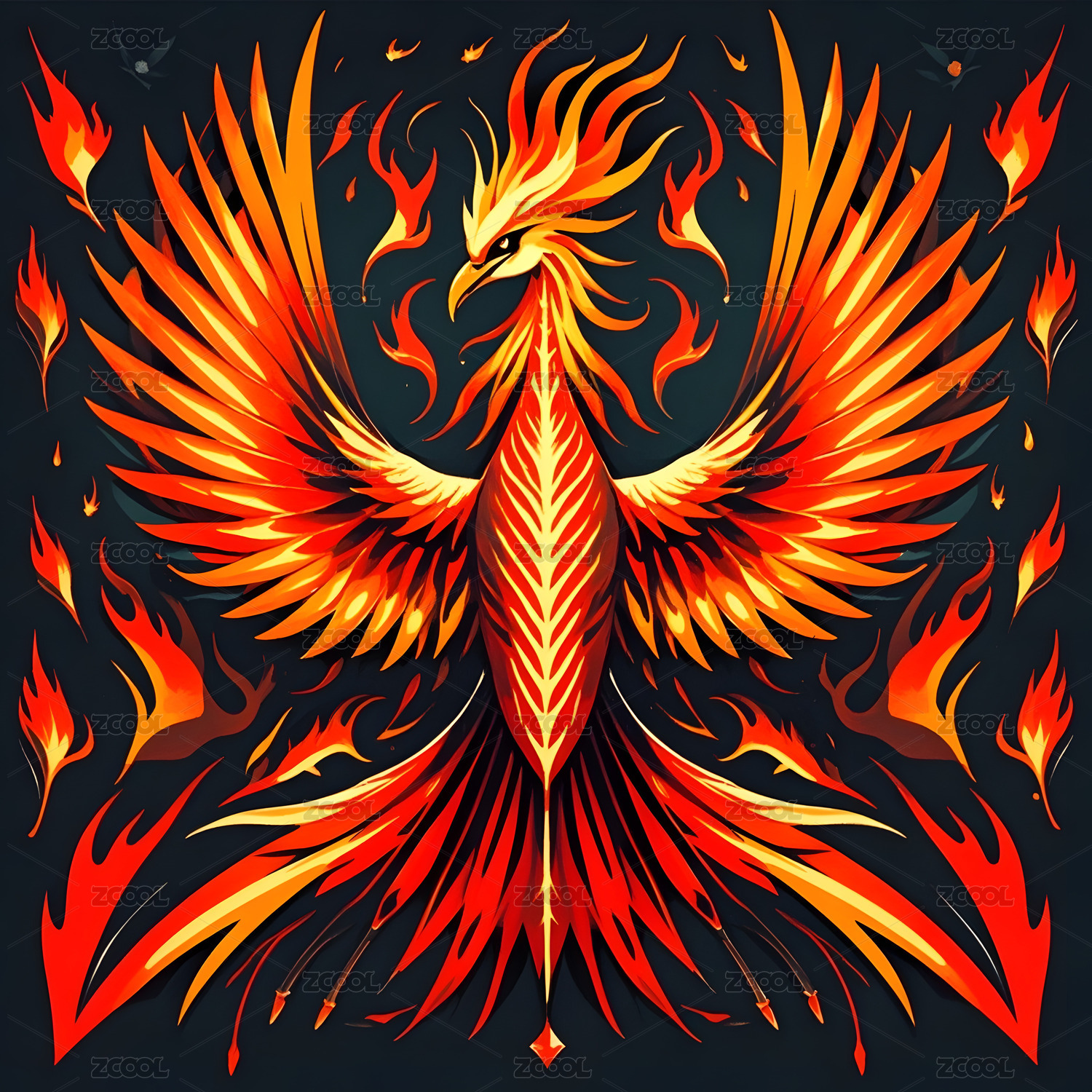 火焰凤凰的艺术插画