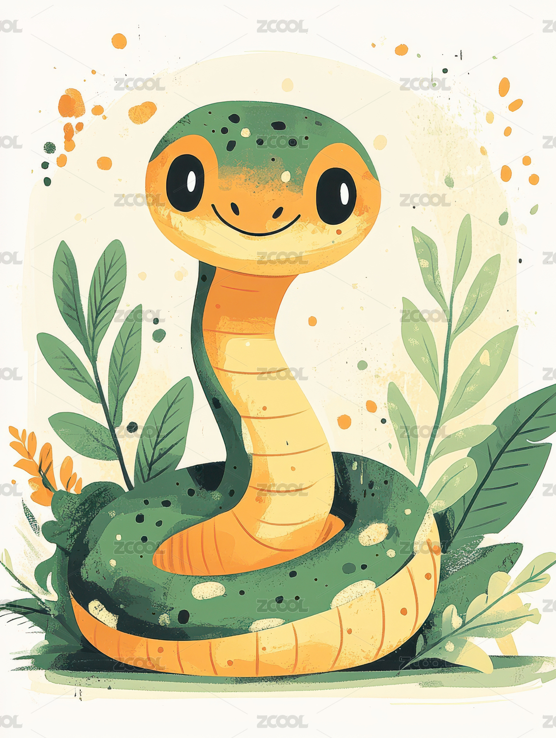 蛇年主题灵动缠绕的蛇壁纸插画艺术