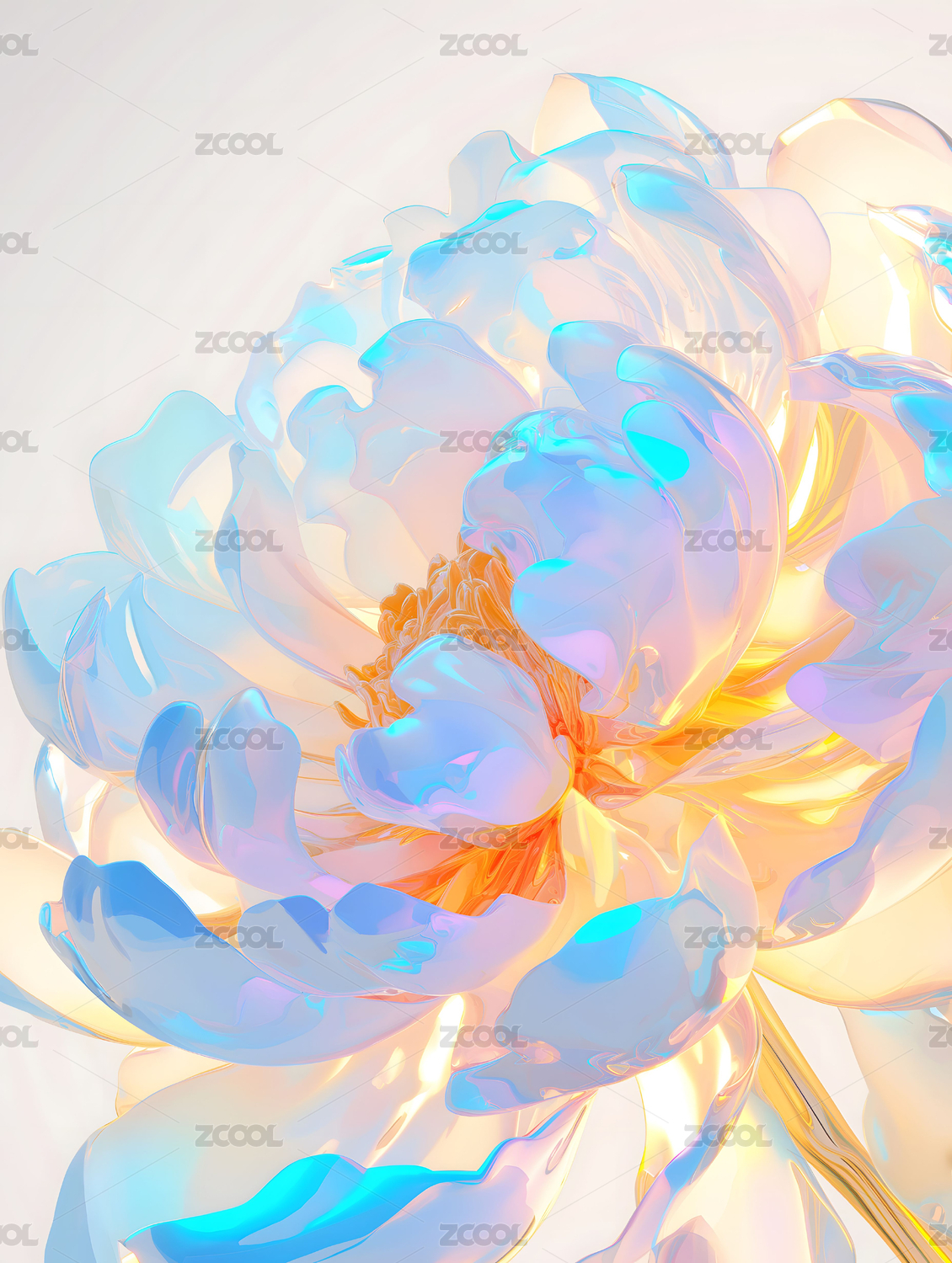 数码科技透明炫彩花朵抽象图形海报背景