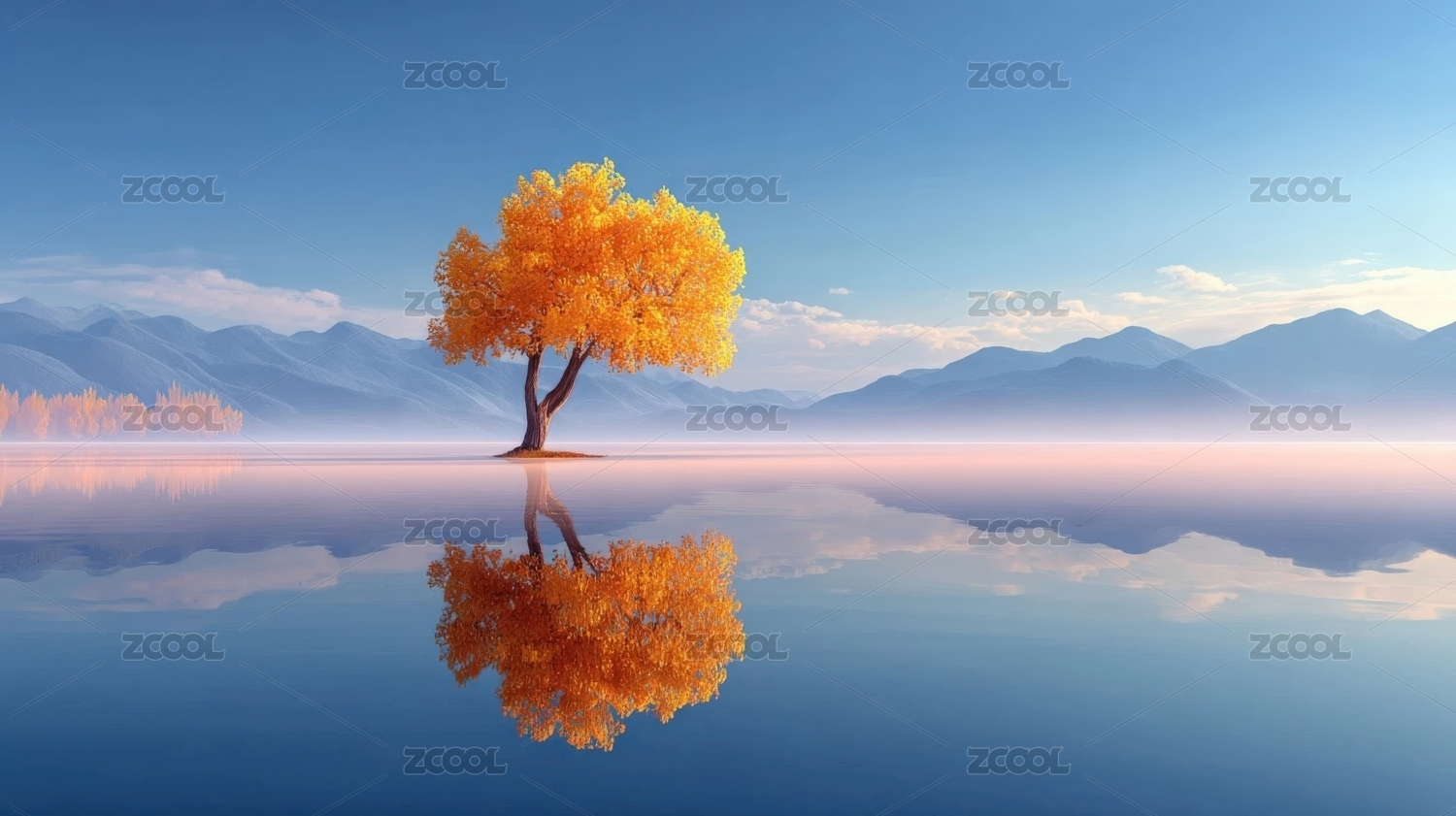 秋季,深秋,红色,枫树,倒影,植物,水,自然美,湖,宁静