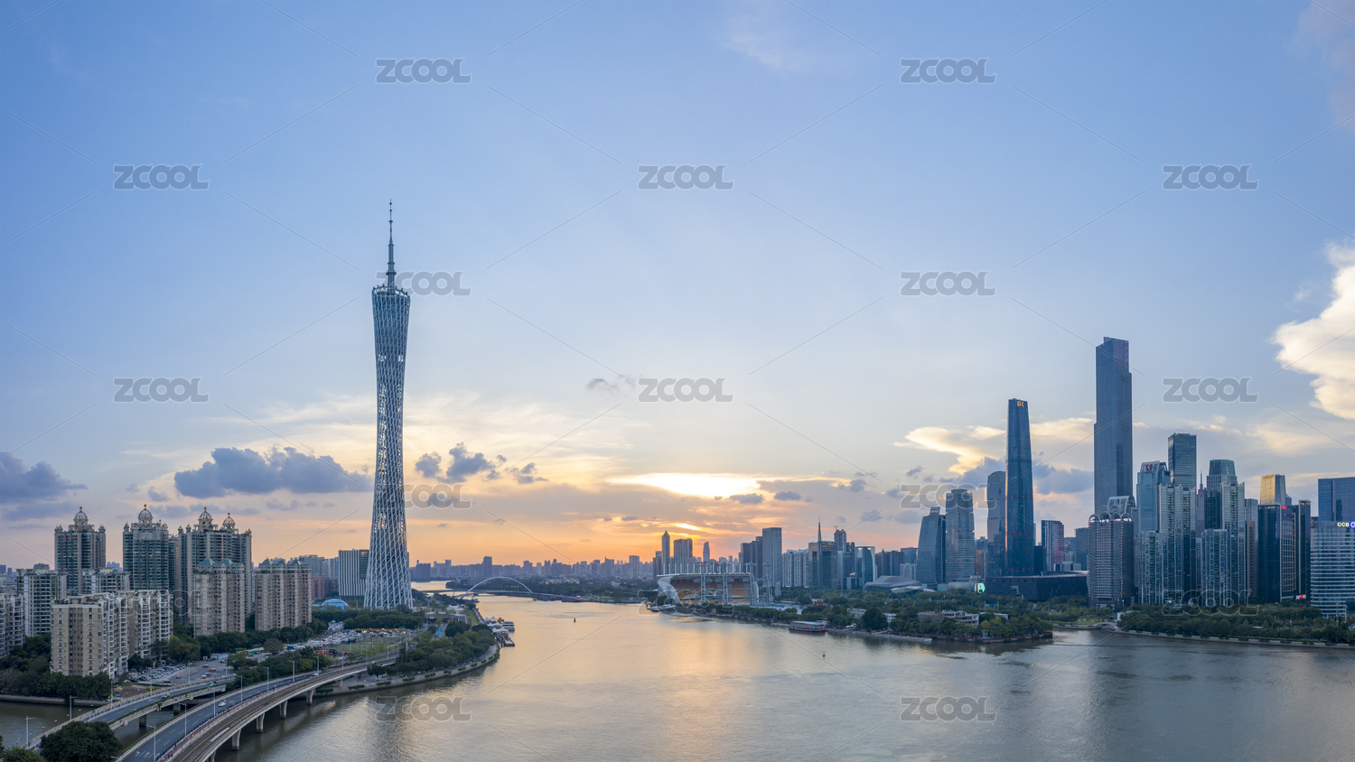 中国广州傍晚城市风光 广州天际线