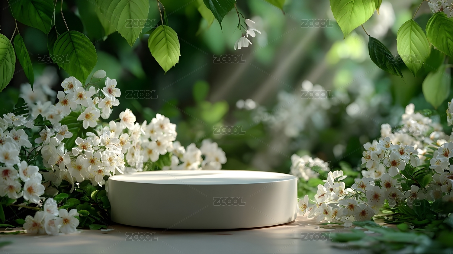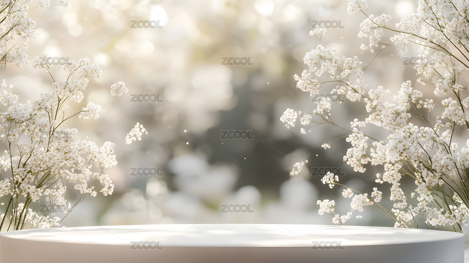 自然花卉与白色圆台背景