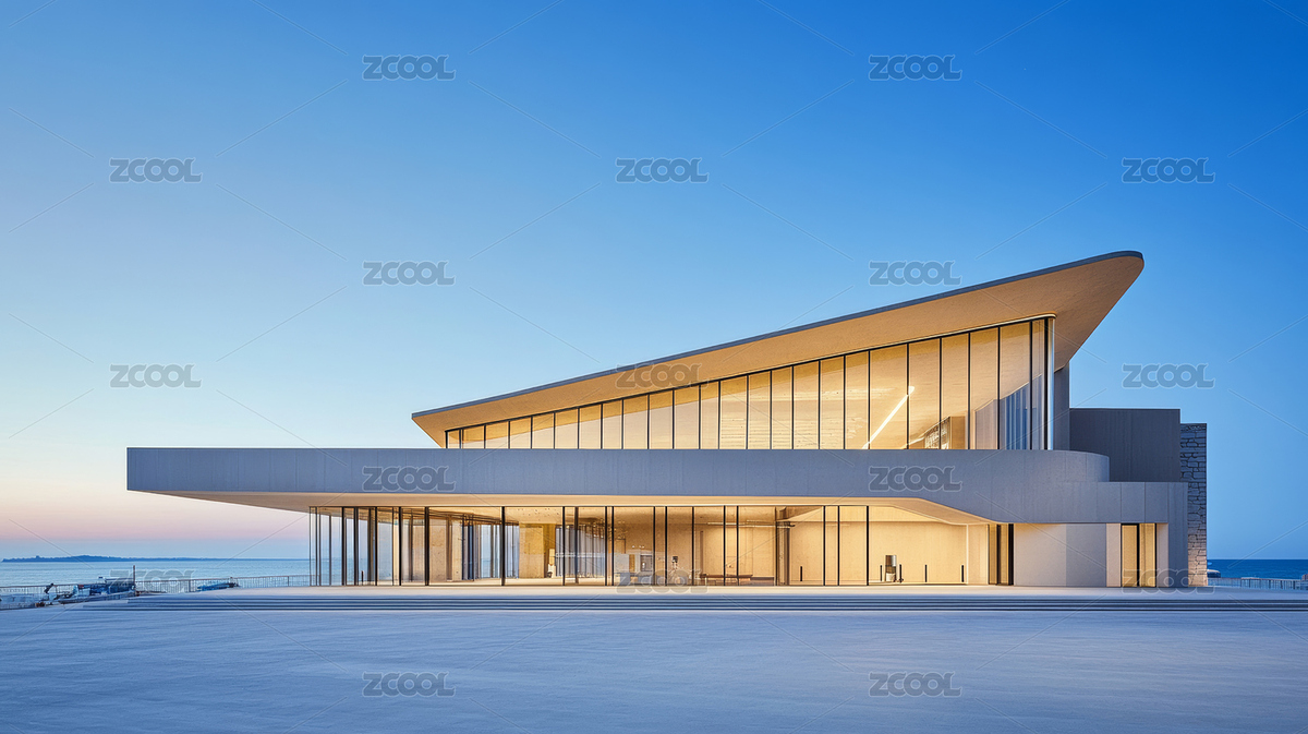 傍晚,海滨,海平面,地平线,建筑,剧院,艺术中心,灯光,背景,天光