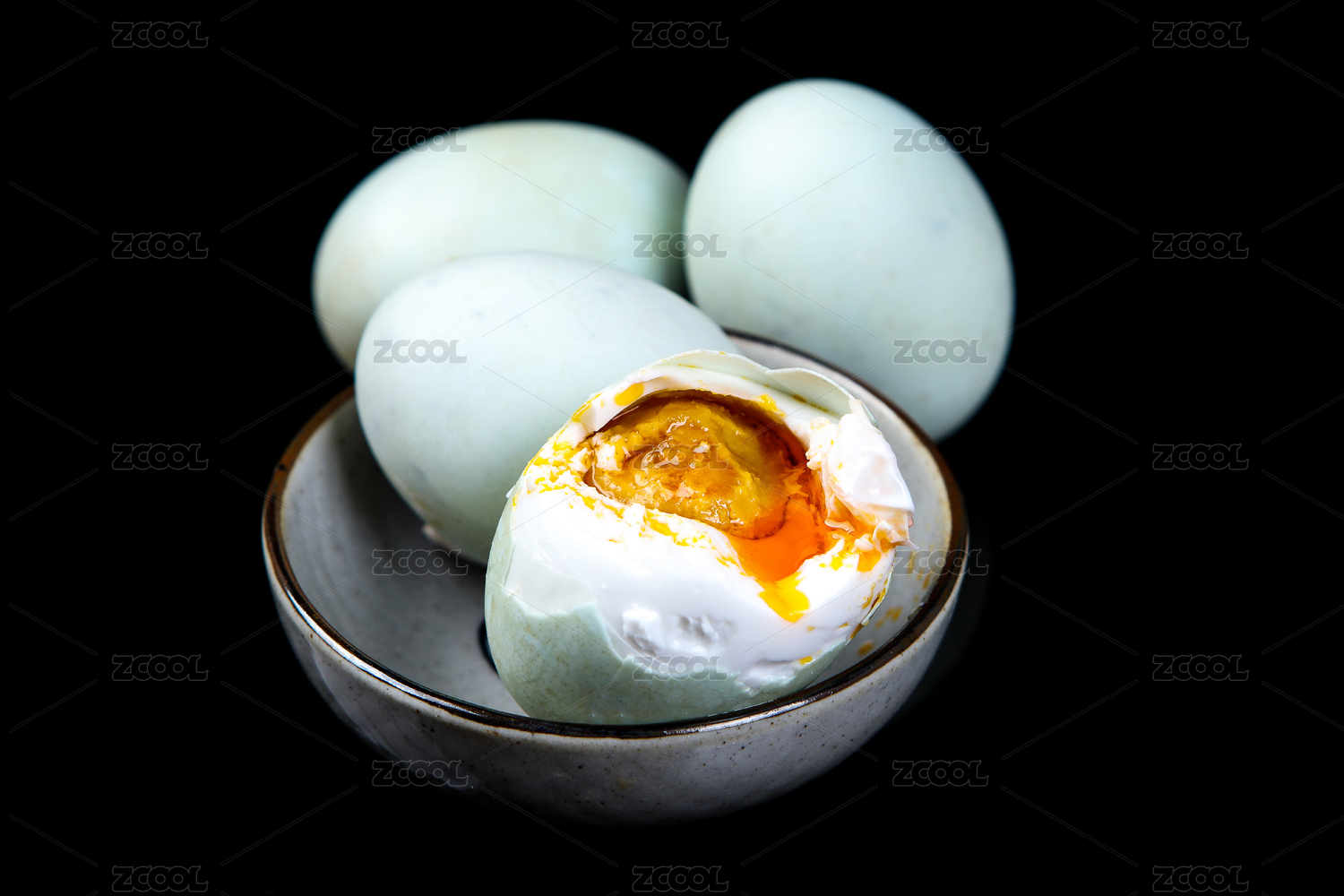 白色背景下装在碗里的咸鸭蛋