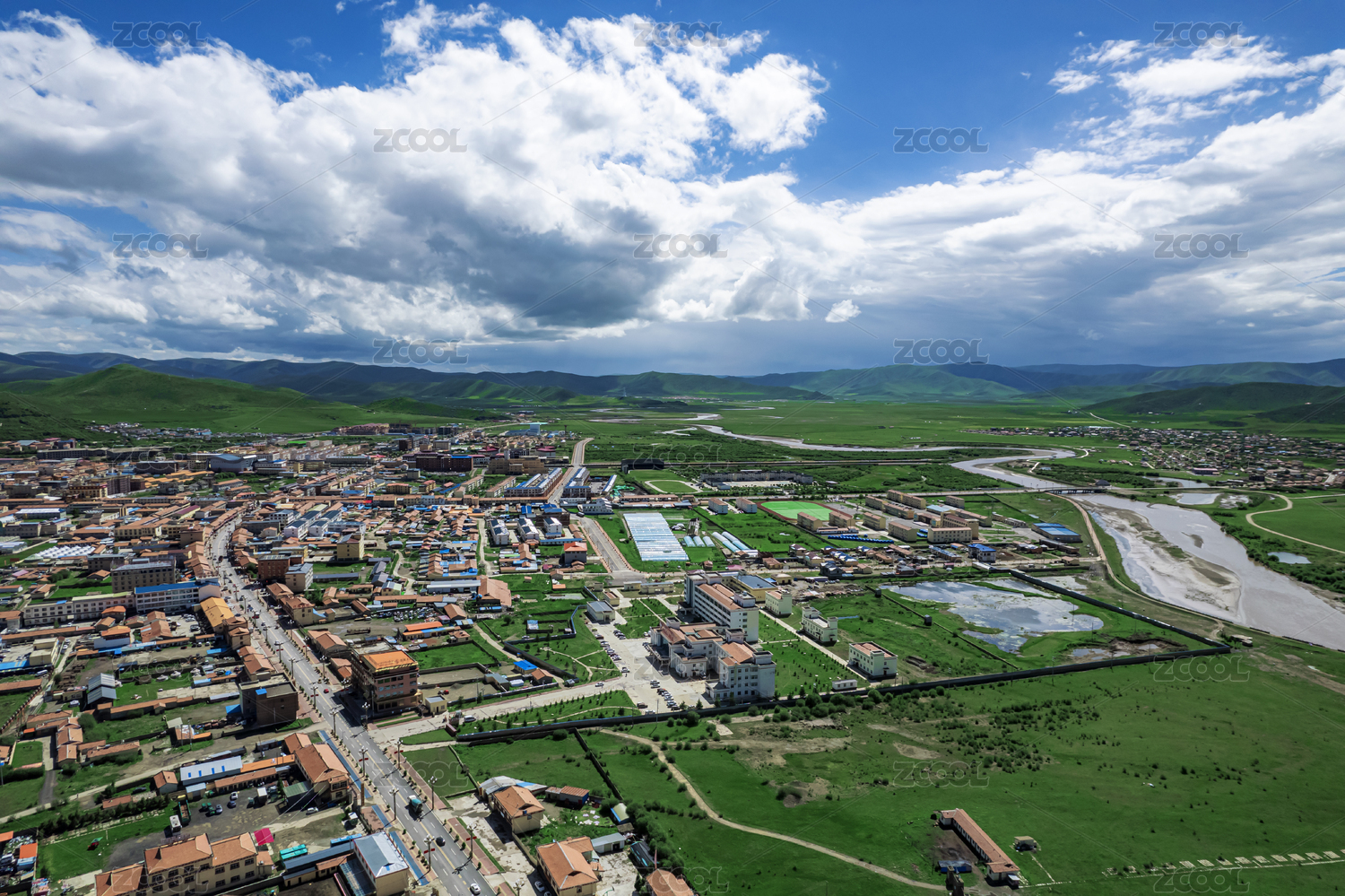 航拍中国若尔盖大草原唐克镇