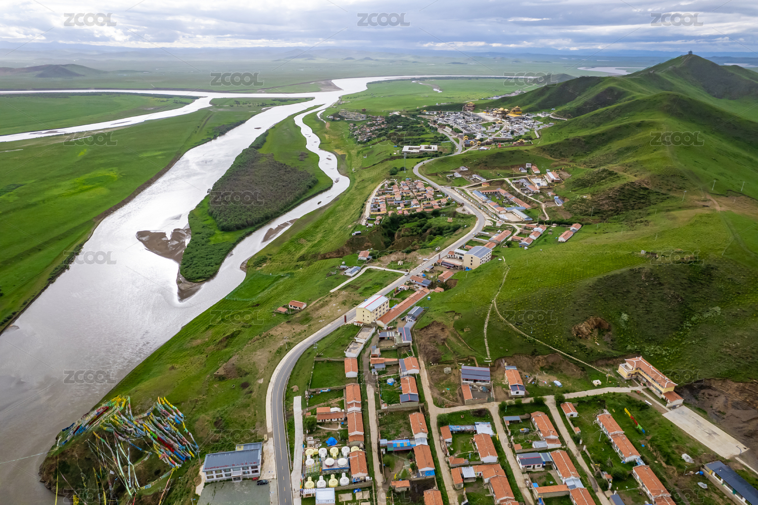甘肃甘南黄河大草原玛曲阿万仓湿地蜿蜒河流